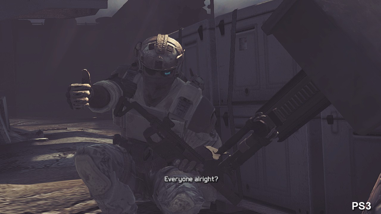 In terms of frame rate, we find the PS3 also falls short of the 360's performance, but these dips aren't common enough to detract from the experience of playing the game. Typically, it's isolated to two on-rails set-piece moments we see in the game, where the player's movement and camera are entirely directed as they guide a hostage. The lowest we see it go is around 15FPS during the scripted fire-fights that ensue around you at these points, but these aren't representative of actual free-moving combat sections.