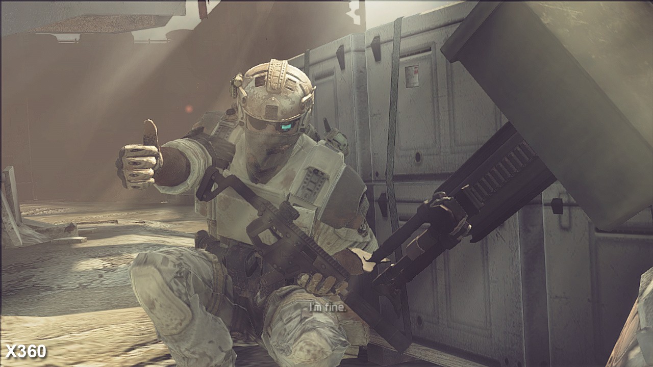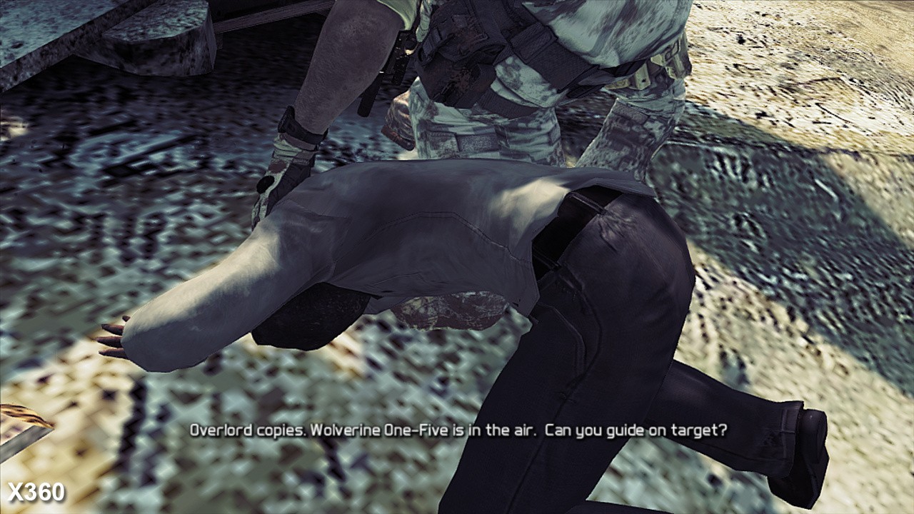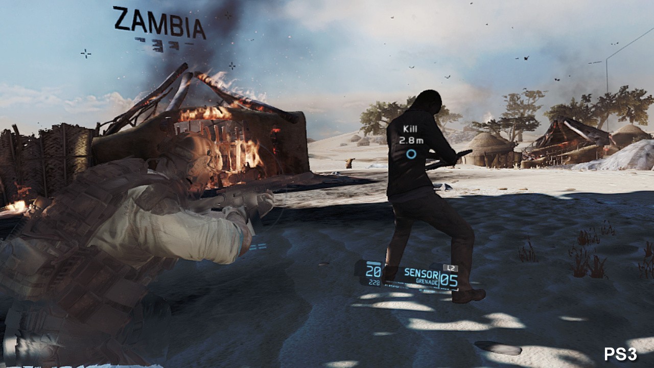 Sub-HD resolution aside, the visual direction of Future Soldier can sometimes hold itself up with the other luminaries of the genre. The art team clearly followed their visual reference points faithfully for each locale, with swirling dust clouds and heat waves rising from the ground in Namibia stage - both effects hugely aiding the game's atmosphere. Unfortunately, there are some glaring rough edges which really drag the overall presentation down a notch. Ground texture resolution is abysmally low in places - a problem common to both platforms, and only accentuated by some cut-scenes which specifically frame them up-close. It's jarring, but only because so much work has been put into other aspects of the visuals.
