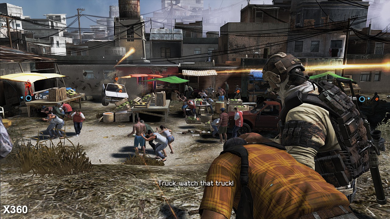 In practice, it's to Ubisoft Paris' credit that the frame rate is more consistent during combat than it is for cut-scenes. For the sake of controller response, Future Soldier has certainly been optimised with the right priorities in mind for both platforms, though the PS3's reliance on disengaging v-sync proves to be a necessity in order to match the 360's refresh. The lowest we see either platform go down to is 25FPS, particularly during one gunfight factoring in over eight enemies spread over a wide, expanse of rubble-spread terrain. For the majority of our time spent with both versions of the game, though, this really hasn't detracted from the core gameplay experience.