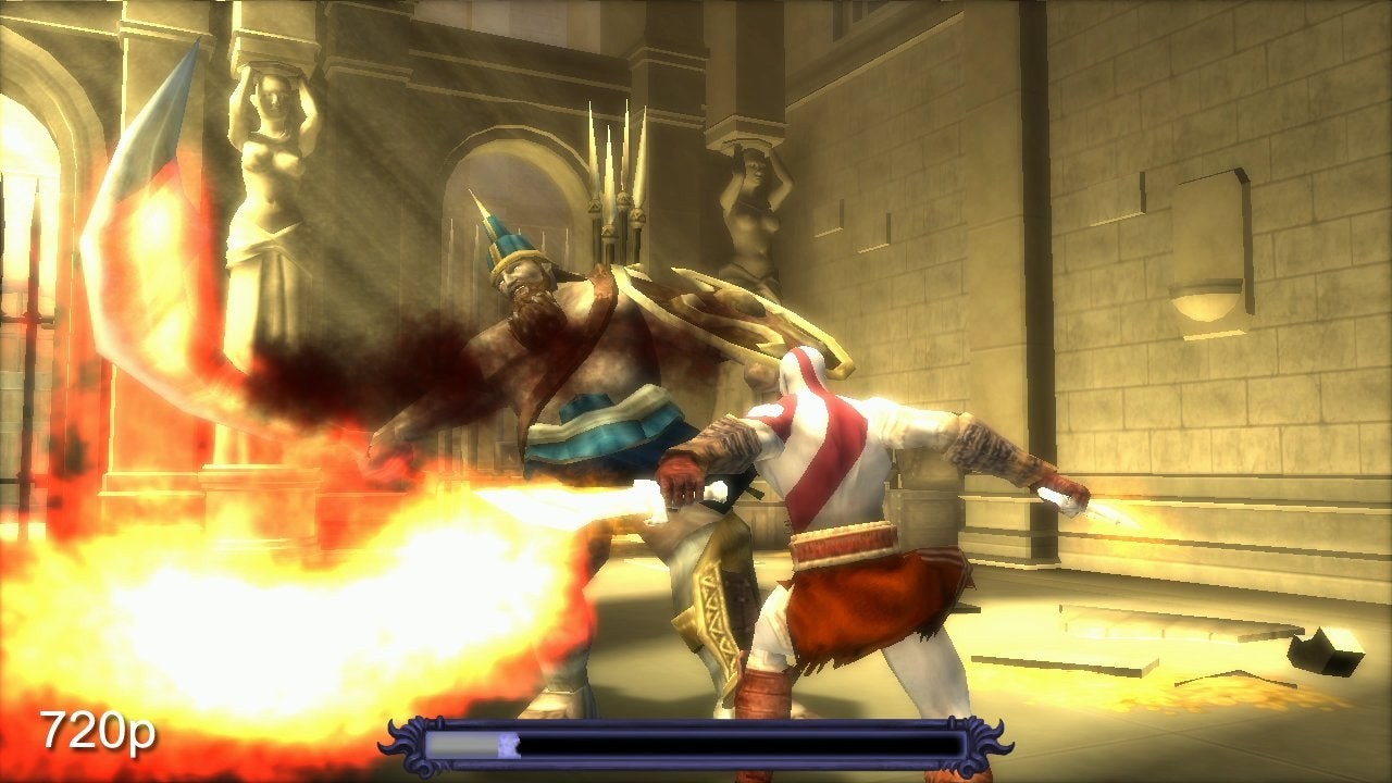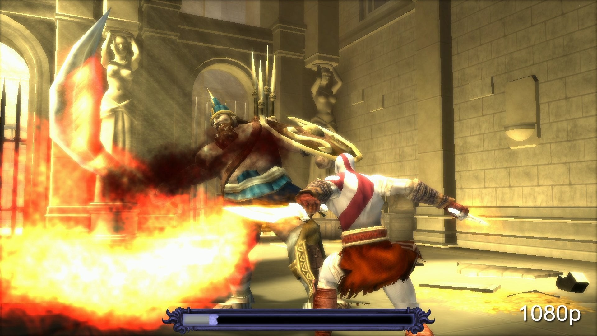 "Between Chains of Olympus and Ghost of Sparta we had over an hour of pre-rendered cinematics, and the gap in video resolution between our PSP source footage and full HD was so extreme that no matter how many custom video up-scale solutions we tried, there was just a glaring quality difference between the 1080p real-time gameplay and the video," Nathan Phail-Liff says.