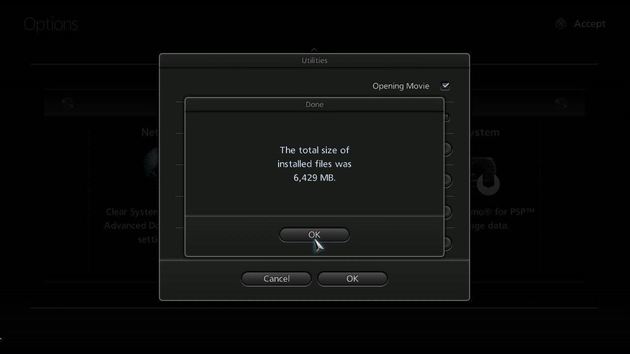 Thanks to the wonder of time-lapse video, you can check out our overall timing here. Why the video? Well, note the way that the progress bar works - its reading is in no way indicative of how much longer you'll actually be waiting at any given point. The chances are it is tied into the number of files it is processing as opposed to the time taken in transferring them, hence the uneven timing. This video covers the 1.01 patch install, which adds an approximate time to completion - the accuracy of which is somewhat amusing.