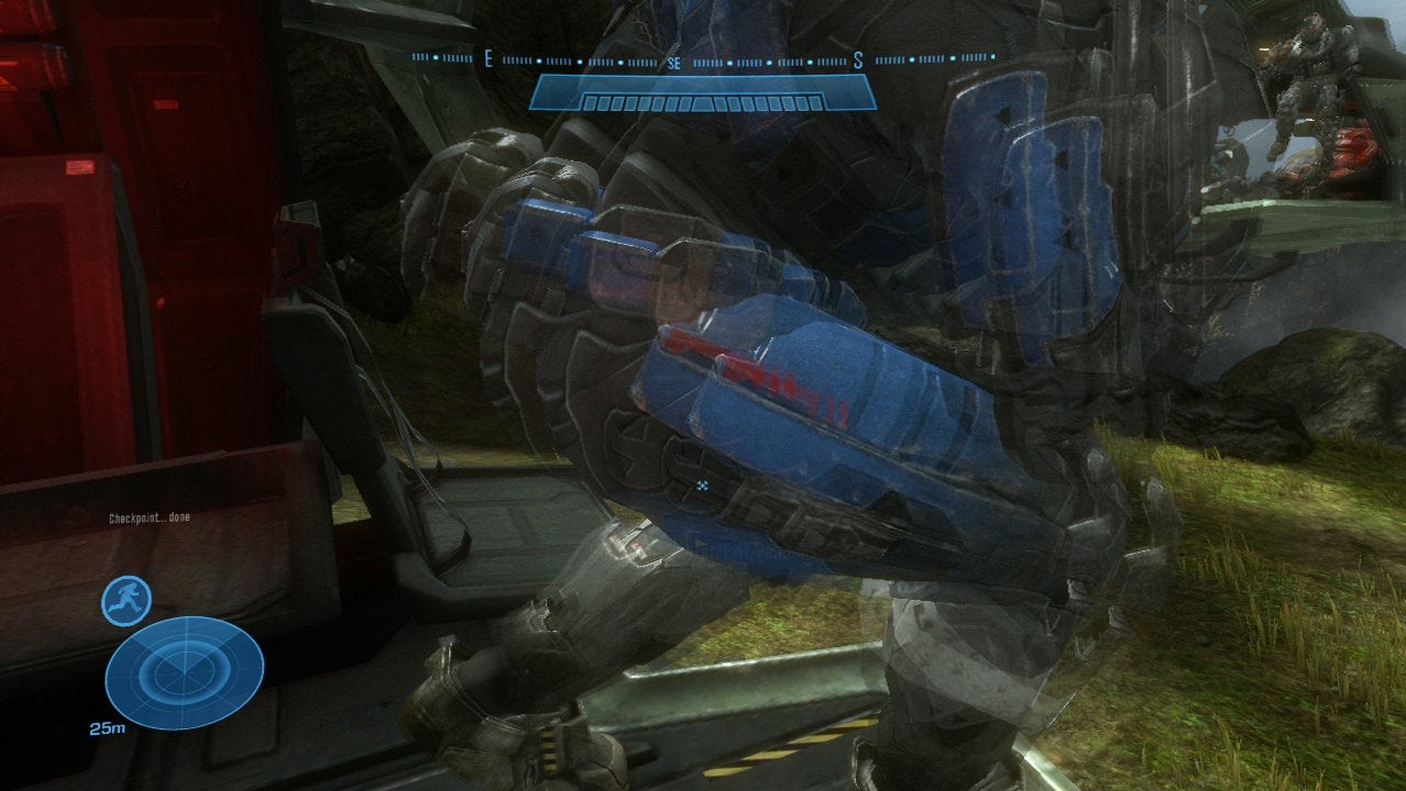 The disadvantages mostly make themselves known in the movement of large objects directly in front of the camera in cut-scenes, or in front of the player in-game. In the case of the latter, should a Spartan team-mate walk across your field of view, most of the screen can be taken up with an unattractive ghosting character. In the cut-scenes, the effect is far more pronounced: not only are characters often moving directly in front of the camera, but it's clear that these parts of the game have many frame-rate issues.