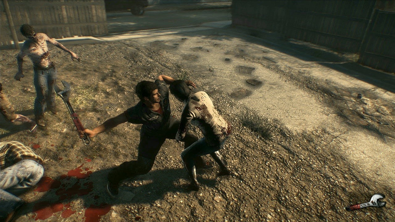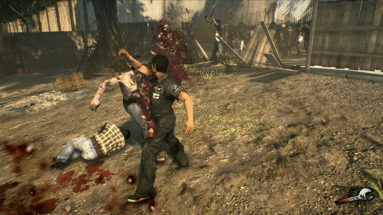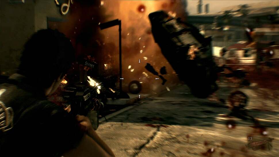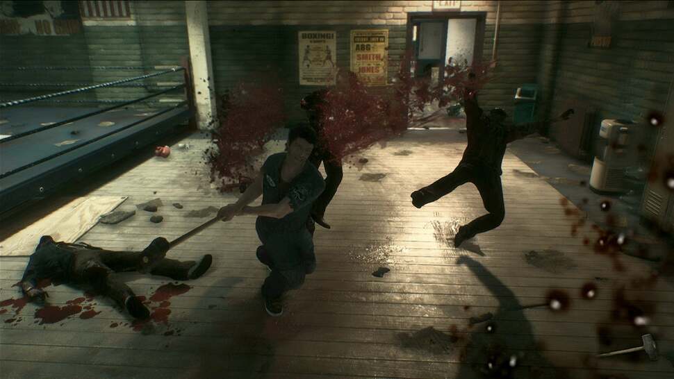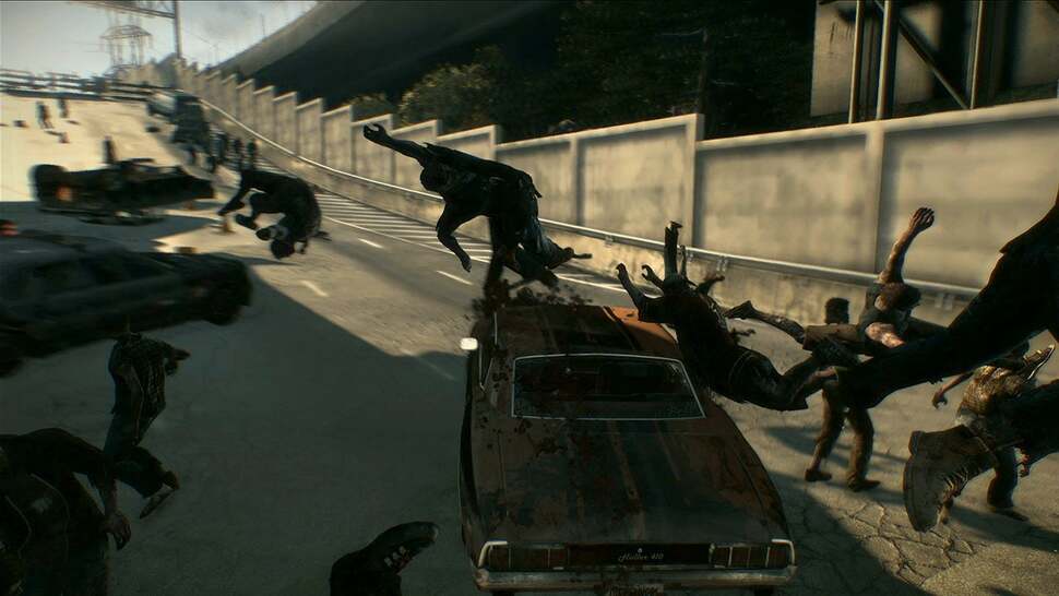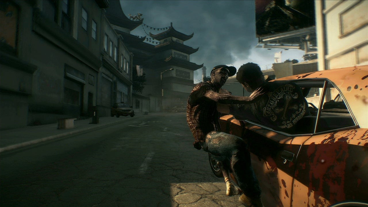 There's no confirmation on resolution, but from what we saw, it's not far from 1080p in terms of clarity. God rays and motion blur are implemented, but in a very subtle manner. Camera-directed flashlights operate much like Silent Hill: Shattered Memories while inside, producing strong, atmospheric stencil shadows, which also demonstrate a huge improvement to reflection mapping on the player's suits. While outdoors, Dead Rising 3 has a few issues with streaming the environmental elements quickly: one particular scene has us driving full-pelt through a zombie-infested cemetery in a hearse, where a gazebo suddenly pops in only a few metres away.