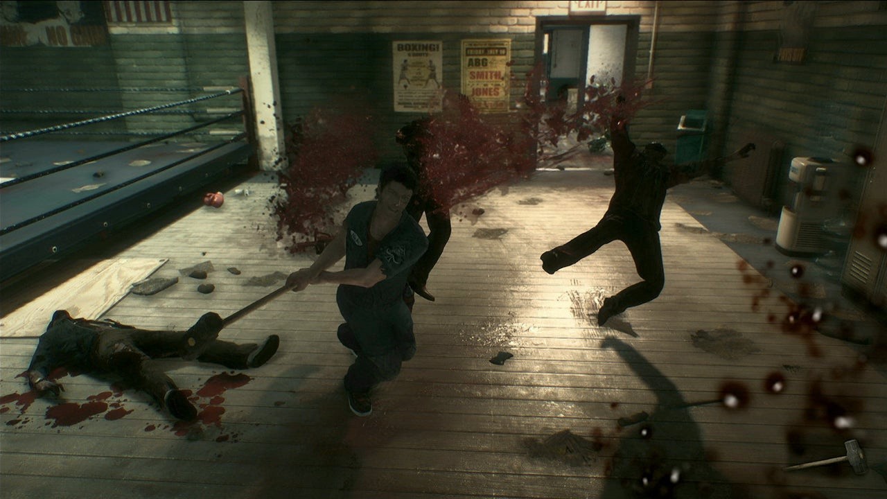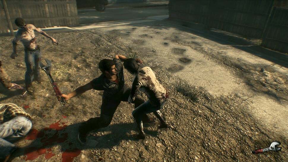 The mass-zombie culling formula is the same as before, but amplified by the enemy count. For this third release, the team promises three times the number of zombies compared to the last game, and it's supposedly pushing for a more mature mood than before. The demo starts with a sledgehammer being picked up in a restaurant, which is soon combined with a saw to create a "sledge-saw". Smartglass integration comes in handy for scouting new weapons; a tablet is used as a map to locate new blueprint sheets or directions to specific guns, and also to input codes for air strikes.