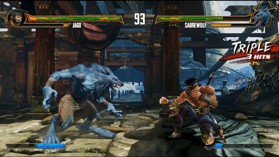 A simple demo based on the single Tiger's Lair stage, where two fighters are available: Jago, a bandit equipped with mask and sword, and ZX Spectrum stalwart, Sabrewulf - represented here as a silver, mutated wolf in a loin-cloth. In terms of the gameplay style, imagine playing Street Fighter 4 and you'll have some idea of control responsiveness and input style, though there's a heavier focus on keeping combos alive here than in Capcom's classic brawler.