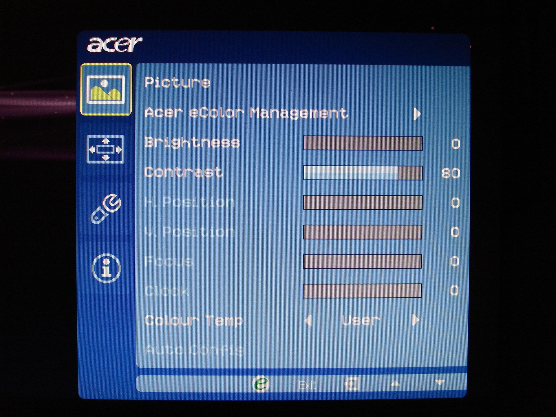 There are five picture modes to choose from (Eco, Standard, Graphics, Movie, and User), which can all be customisable under 'User' when you start to make changes, along with options to control Aspect Ratio and White Balance (just basic RGB values, no hi and low-end controls for proper greyscale and gamma adjustment). You can also set up your PC to directly control the monitor's settings via DDC (Display Data Channel), using software on your PC to calibrate the display without changing anything on the monitor itself. Any alterations you make here are fixed to the specific device you made them on and not the actual monitor itself.