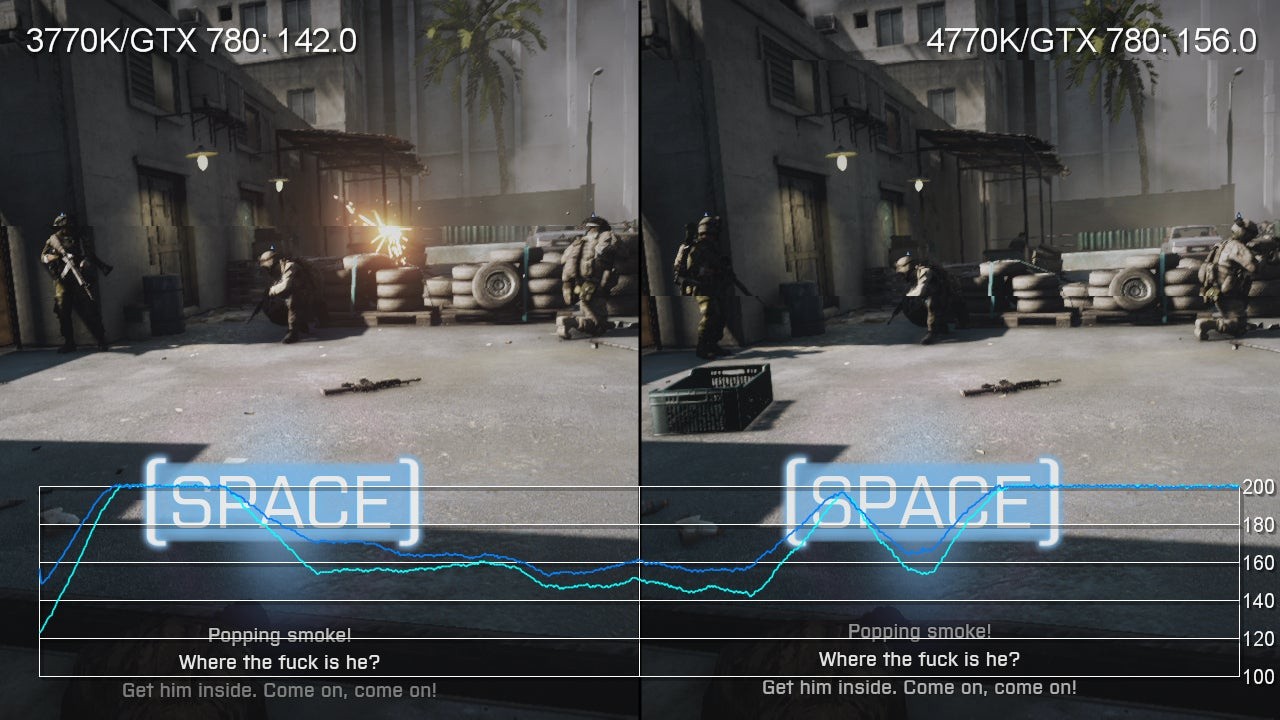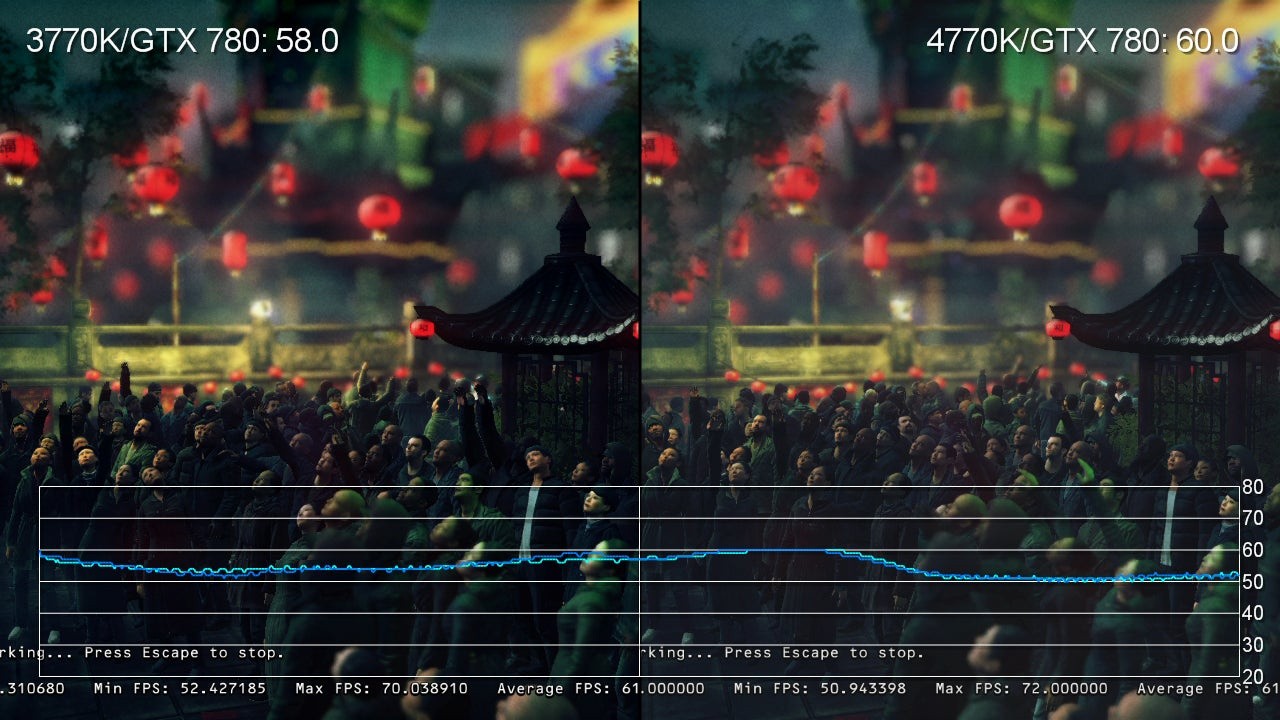 Running the Core i7 4770K alongside a dedicated graphics card is probably the most likely scenario for most enthusiast gamers, so we were curious to see how game frame-rates are improved when moving over from Ivy Bridge. Testing this isn't as easy as perhaps you may think. On the one hand, you want to make sure that the testing is not being held back by graphics hardware, but on the other hand, CPU can contribute significantly to effects work, especially at higher detail levels - so the old, time-honoured technique of reducing resolution and graphics settings to the bare minimum and measuring frame-rate from there isn't the best solution.