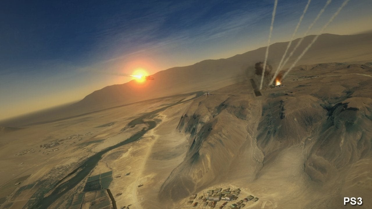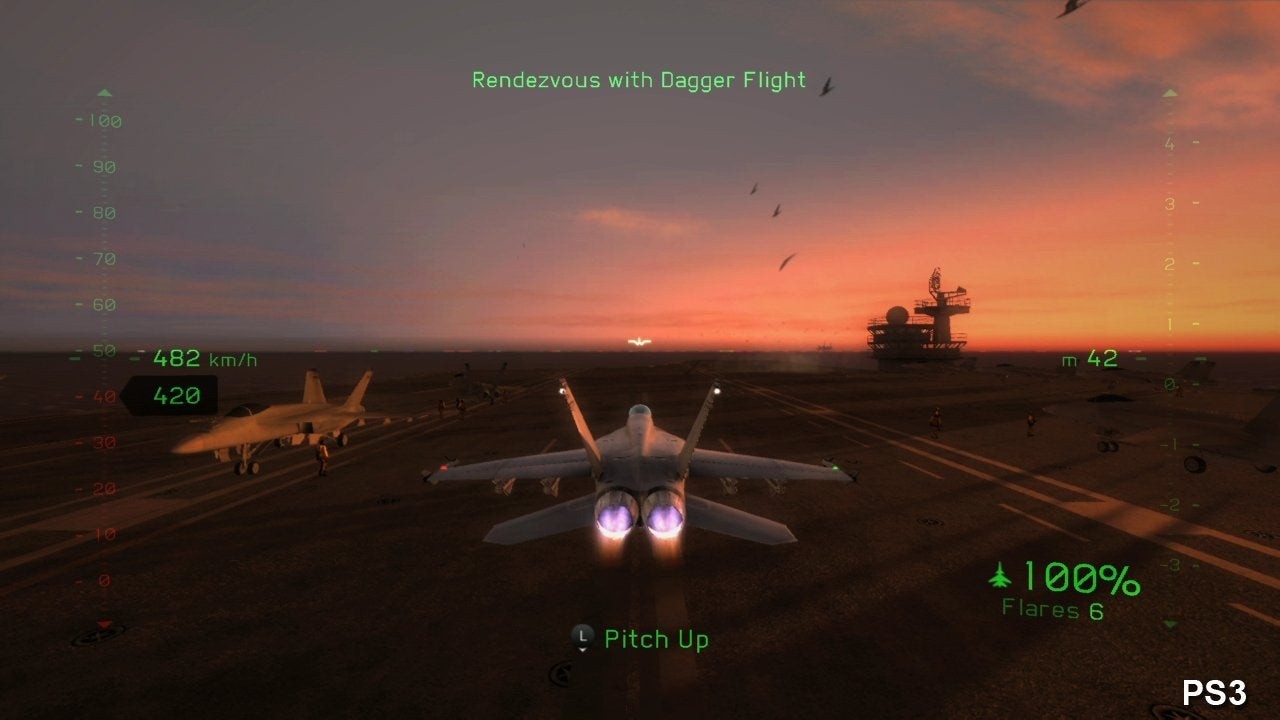 Another bizarre omission concerns the light-source generated by the plane's afterburners on take-off. The ground beneath the player's craft is lit up exactly as you would expect on Xbox 360, while the effect is absent on the PS3 version of the game.