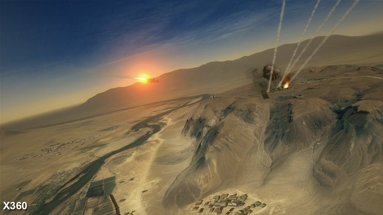 A bit of tweaking under the bonnet can be seen that indicates that the developers have dialled back the PS3 version in a couple of ways. Similar to the first H.A.W.X, there's a longer draw distance on the 360 game when it comes to the ground-based 3D objects, but the grand GeoEye surface textures aren't affected so any impact is minimal. Minor changes in foliage levels also suggest a tweaked LOD.