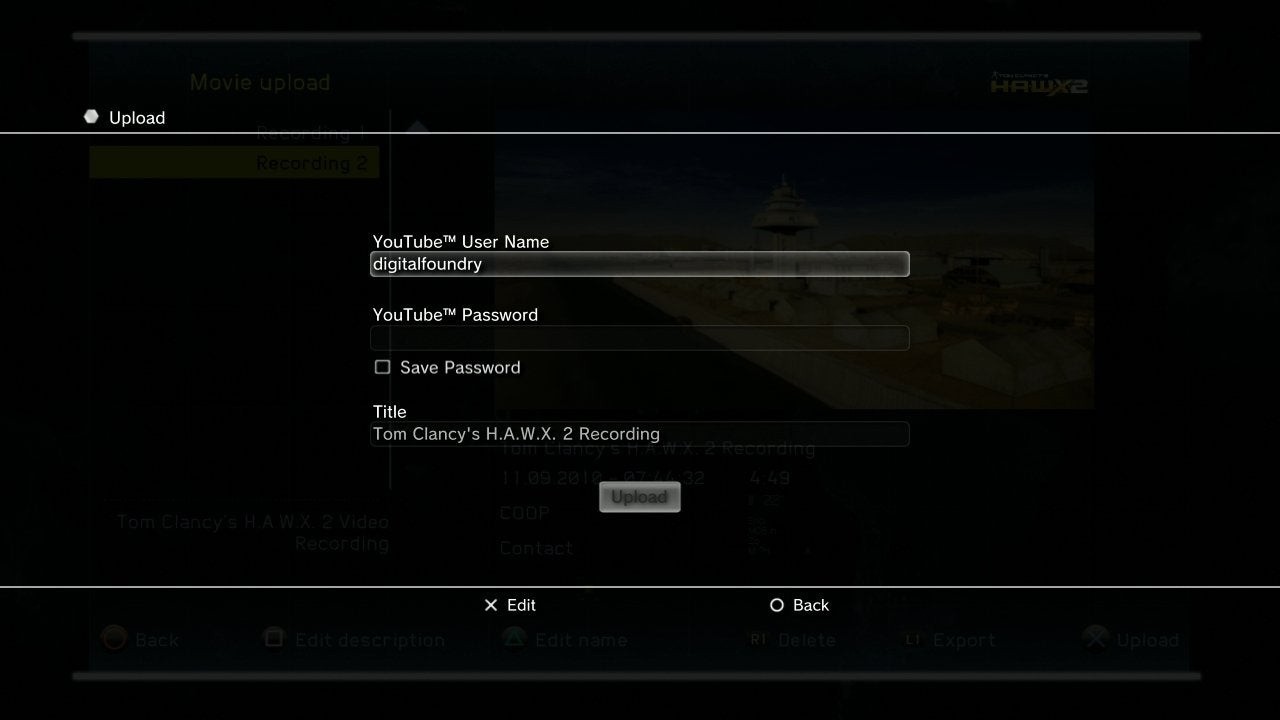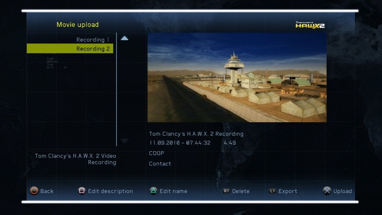 Speaking of video, one element worthy of showcasing happens to be exclusive to PlayStation 3. Similar to Just Cause 2, H.A.W.X. 2 features the ability to record in-game video and then dump it out onto the XMB for later viewing, or else upload it directly to YouTube. Taking the form of a 5mbps h264 file, the videos are even full-on 720p (up against the quarter-res of JC2's vids) and capture every single moment of gameplay between pressing the start and stop buttons. Encoding and final quality level is dog rough, but it's non-intrusive, fast and quick to encode once you opt to export your captures.