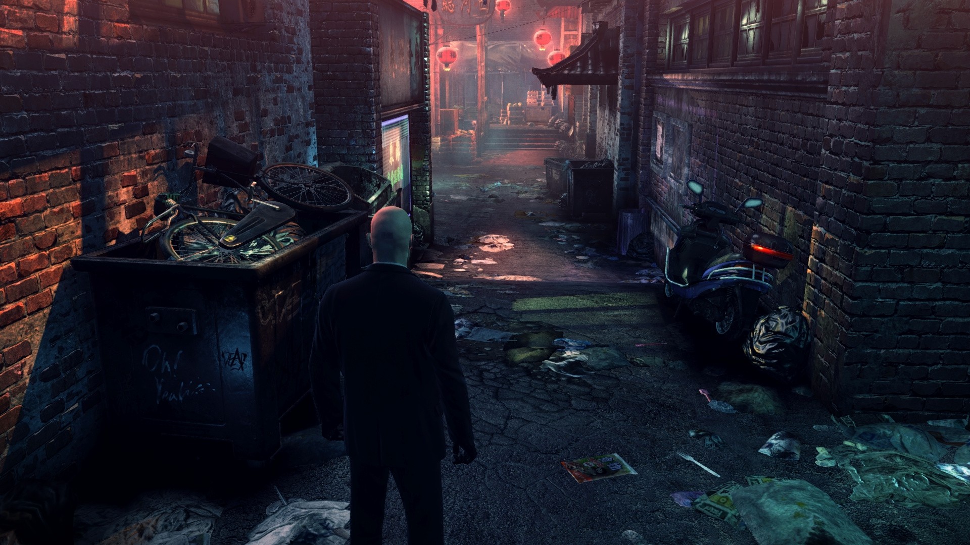 One of the first missions in the game sees Agent 47 having to assassinate a Chinese gangster in the heart of a crowded square in Chinatown: environment detail is high and NPCs completely fill the play area. Remarkably, both versions stick closely to the desired 30FPS with relative ease, with the only annoyance being a mild judder effect caused by the uneven frame cadence.