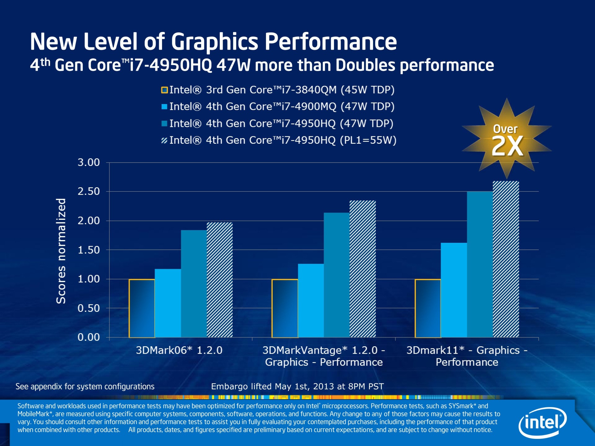 "From HD 5000 up to Iris Pro, the fourth gen Core processors offer a significant bump in performance over the current Ivy Bridge line."