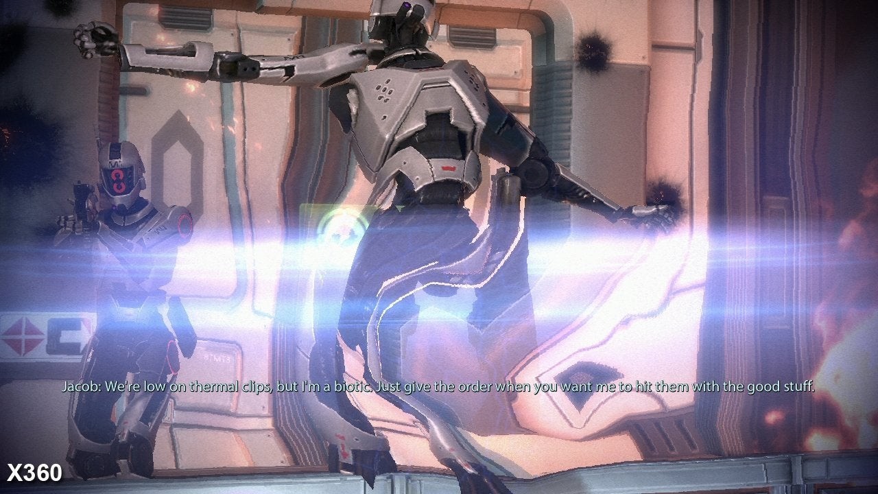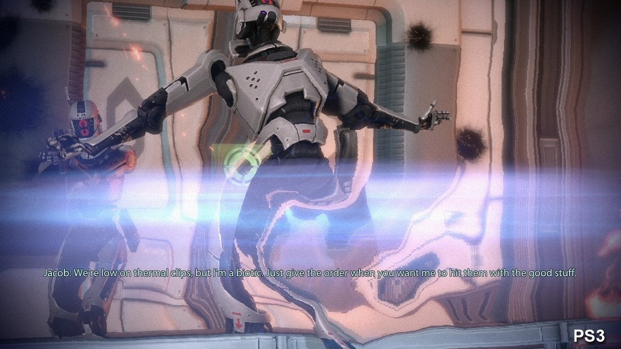 In addition to that particular shader effect, Jacob's initial biotic effect showcase also appears to be rendered using a lower-precision effect than the Xbox 360 version of the game. The very, very subtle motion blur that kicks in when Shepard is running also appears to be absent on PS3 (it's difficult to pick up on 360, but pretty obvious on the PC version).