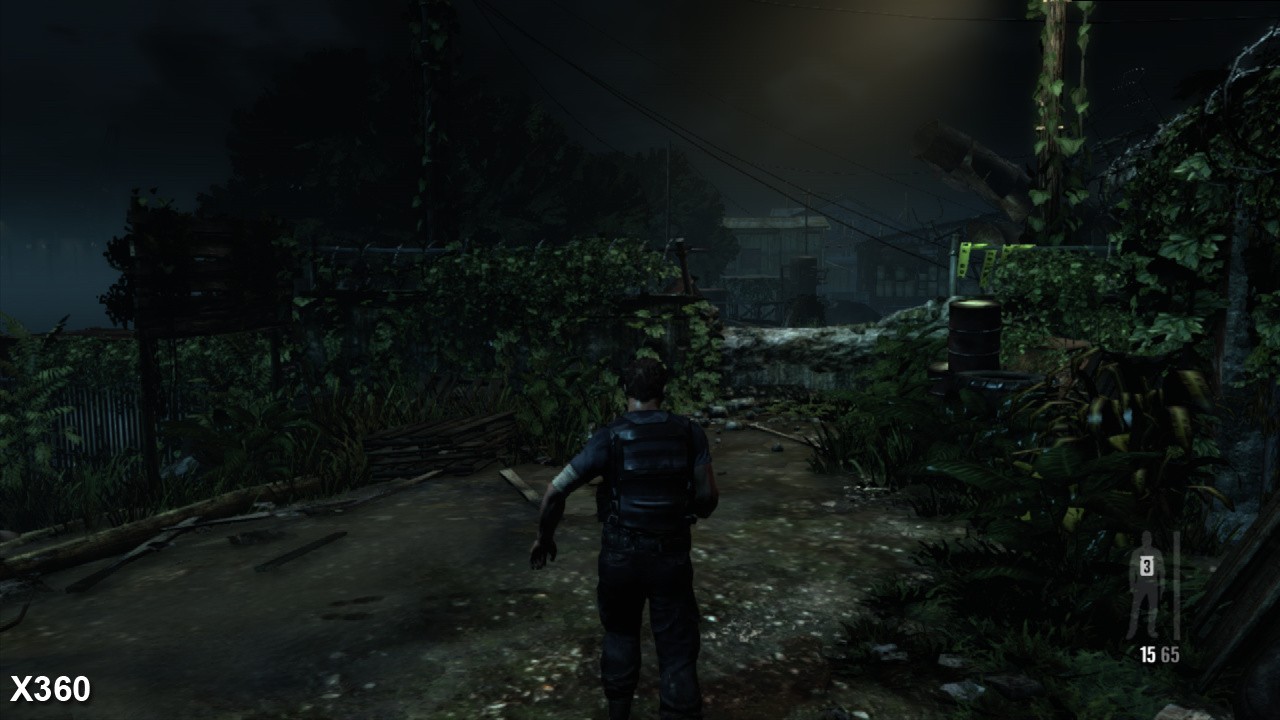 One sizeable difference is in the way foliage is treated on both platforms. The 360's heavy-handed use of an edge-detection algorithm affects the appearance of plants quite drastically, giving their flourishes a fuller, darker look. By comparison, close-ups show individual leaves on PS3 to be noticeably more thinned-out - sometimes to the point of invisibility from certain angles, where their details are somehow thinner than the pixels in place to represent them. Curiously, densely packed swathes of plant life on the later dock levels also appear to be pared back on PS3, similar to the way grass tufts are culled from plains in Read Dead Redemption - but this is really only noticeable in a direct face-off environment.