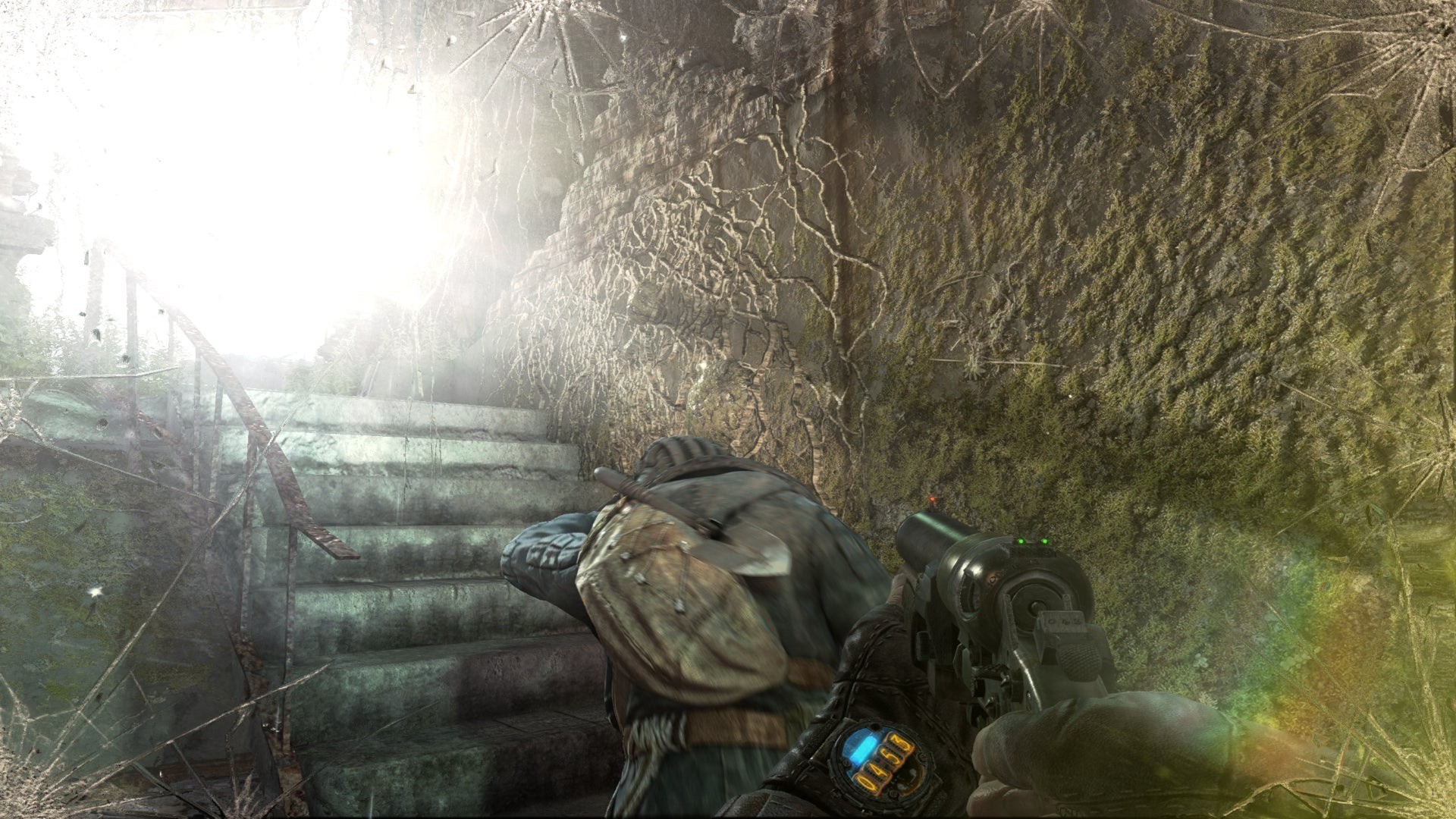 Maxed out 1080p performance on PC can also be lop-sided in spots. While far from the optimal specs put to e-paper by 4A Games, our GTX 670 combined with a Sandy Bridge Core i5 processor clocked at 4.2GHz achieves between 40-50FPS on these settings, with no SSAA engaged. However, heavy stuttering kicks in during the first proper shoot-out in the Escape mission, rendering it practically unplayable until we shuffle past the central building. 10FPS becomes the norm in this case alone - entirely unlike the moderate 30FPS frame-rate dips we see during most combat, and lower than even PS3 or 360's worst spells. 4A Games has discussed the scalability of the engine across a range of PC hardware (even including Intel's integrated HD 4000 GPU in its Ivy Bridge chips), so we'll be looking at that in a little more depth in an upcoming feature.