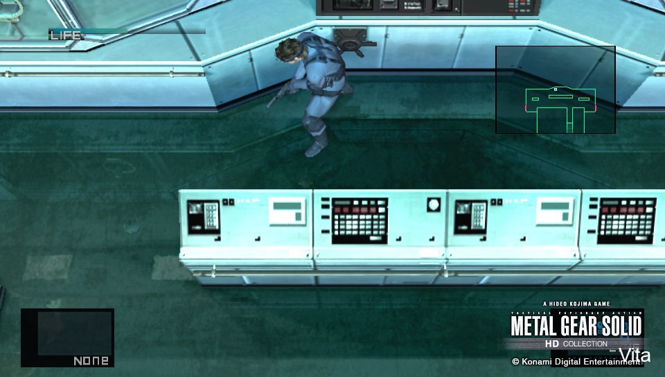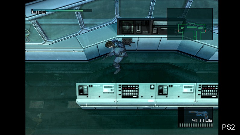 In putting together the Digital Foundry Metal Gear Remastered analysis, we found that the original Konami engine operated at a 512x448 resolution, with the PS2 hardware scaling that up to 640x448 on output. In essence then, this new Vita game could be described as a higher definition collection, with the extra resolution simply accommodating the shift to a 16:9 aspect ratio, with a wider field of view. As you'll see in the shots below, which represent both gameplay and cinematics, the most dramatic difference is that the 4:3 letterboxed cut-scenes now fill out the whole widescreen display, just as they did on the PS3 and Xbox 360 versions.