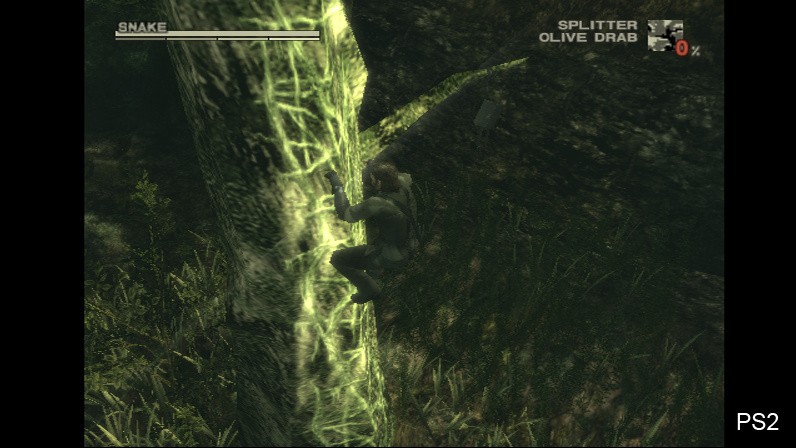 It's a different story with Metal Gear Solid 3: Snake Eater. On PlayStation 2, the engine was pushed to its limits, resulting in big drops to performance in cut-scenes. Forcing the original game to output progressive scan (via Blaze's HDTV Xploder - which also works on back-compat PS3s) seems to indicate that Konami dropped v-sync in gameplay where necessary in order to maintain a more fluid frame-rate - a practice that only really became common in the current HD era. On Vita, thankfully, we have locked v-sync, and there appears to be enough horsepower to maintain a much more consistent 30 frames per second, with only certain cinematics causing frame-rate dips.