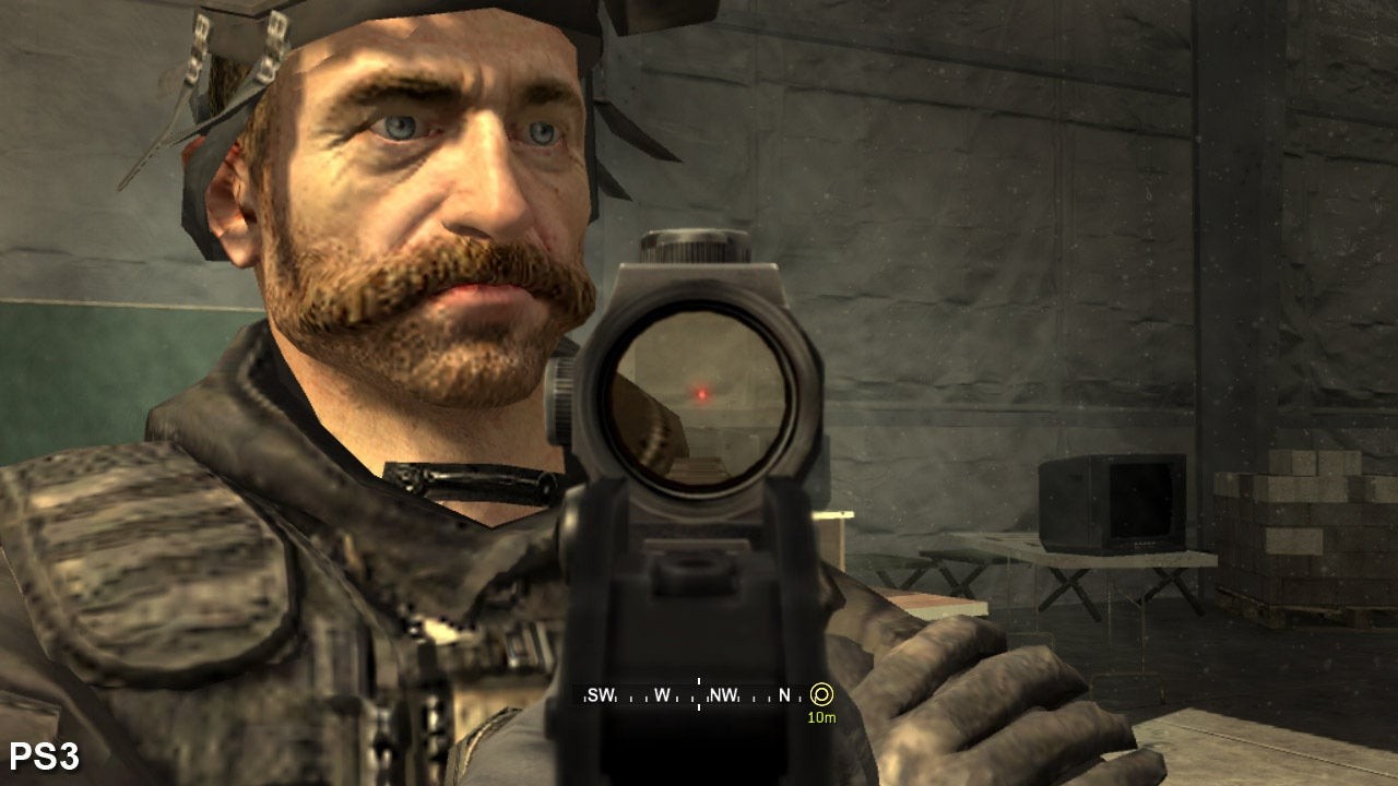 Infinity Ward's improvements to the PS3 game are particularly evident in the handling of textures. The original Modern Warfare did a good job of being perceptually very similar to the Xbox 360 version, but look more closely - literally - and you could see that there were compromises in texture quality. The comparison shots here kick off with a close-up of Captain Price from COD4, followed up by an equivalent close-up shot in the sequel. The improvement is absolutely colossal, and while there isn't quite platform parity, any differences are now negligible.