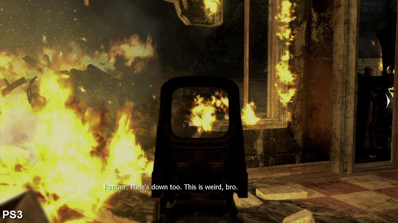 It's clear that the sheer amount of transparency effects Infinity Ward has in play causes both versions of Modern Warfare 2 to drop frames, but the impact is that much more substantial on the PlayStation 3. So can this also be measured during more intensive on-the-ground gunplay? We can certainly give it a try. One of the most performance-impacted stages in the whole game is in "The Hornet's Nest" during Act II. We have a series of clips taken from the same parts of the level, but obviously the actual action is very different.