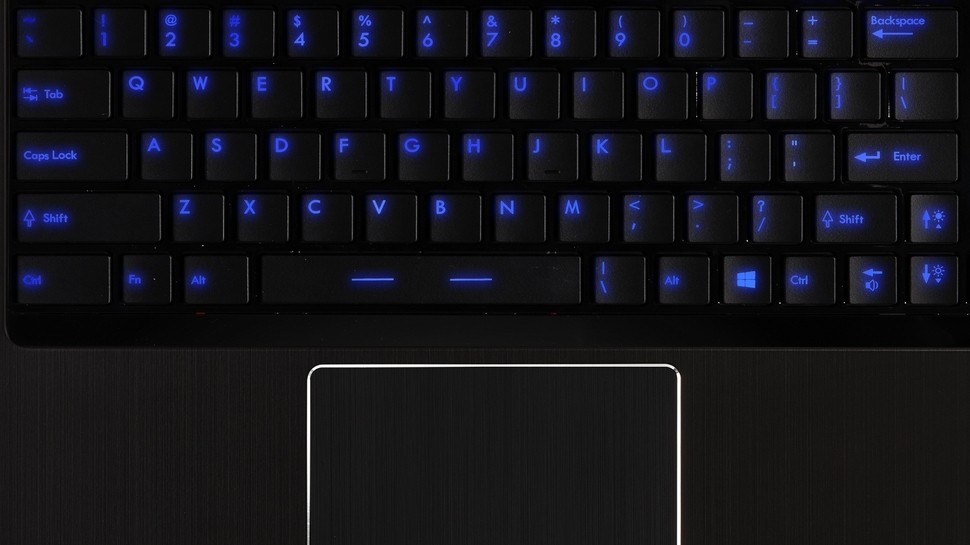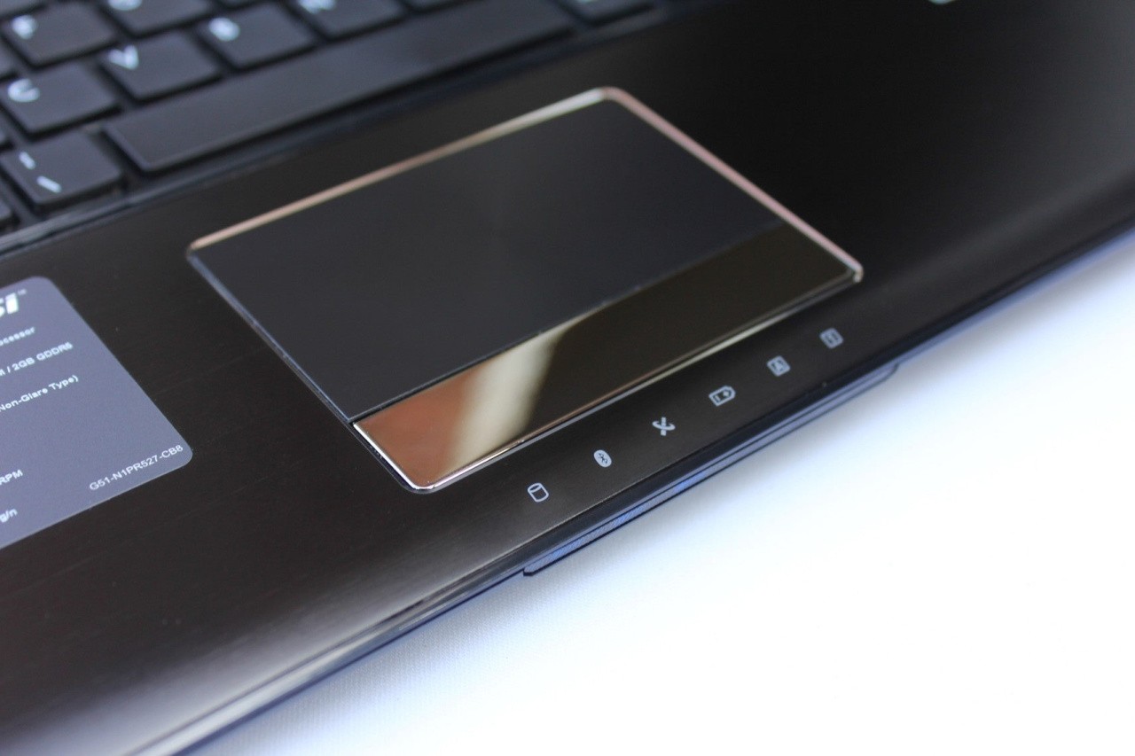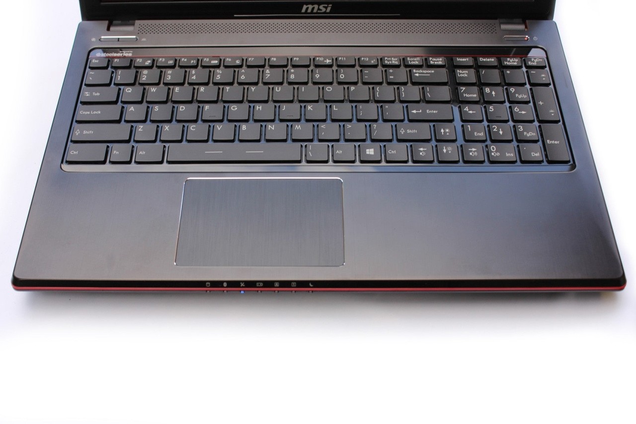 When put to use for browsing, the keys on the GE40's chiclet-style keyboard produce a noisy tap to the touch, and don't sink with any of the firmness of the GE60's SteelSeries full-size keyboard. The low-travel keys of this larger laptop are far easier to work with in word processing, and provide a much more tactile feel that also allows for more responsive simultaneous presses. Otherwise, the GE40's trackpad is a solid effort which registers Windows 8's multi-touch gestures smoothly, below which a single chrome strip is used for left and right clicks. For some, this design may be preferable to the GE60's mouse buttons, which integrate into the foot of the trackpad itself, taking some getting used to.