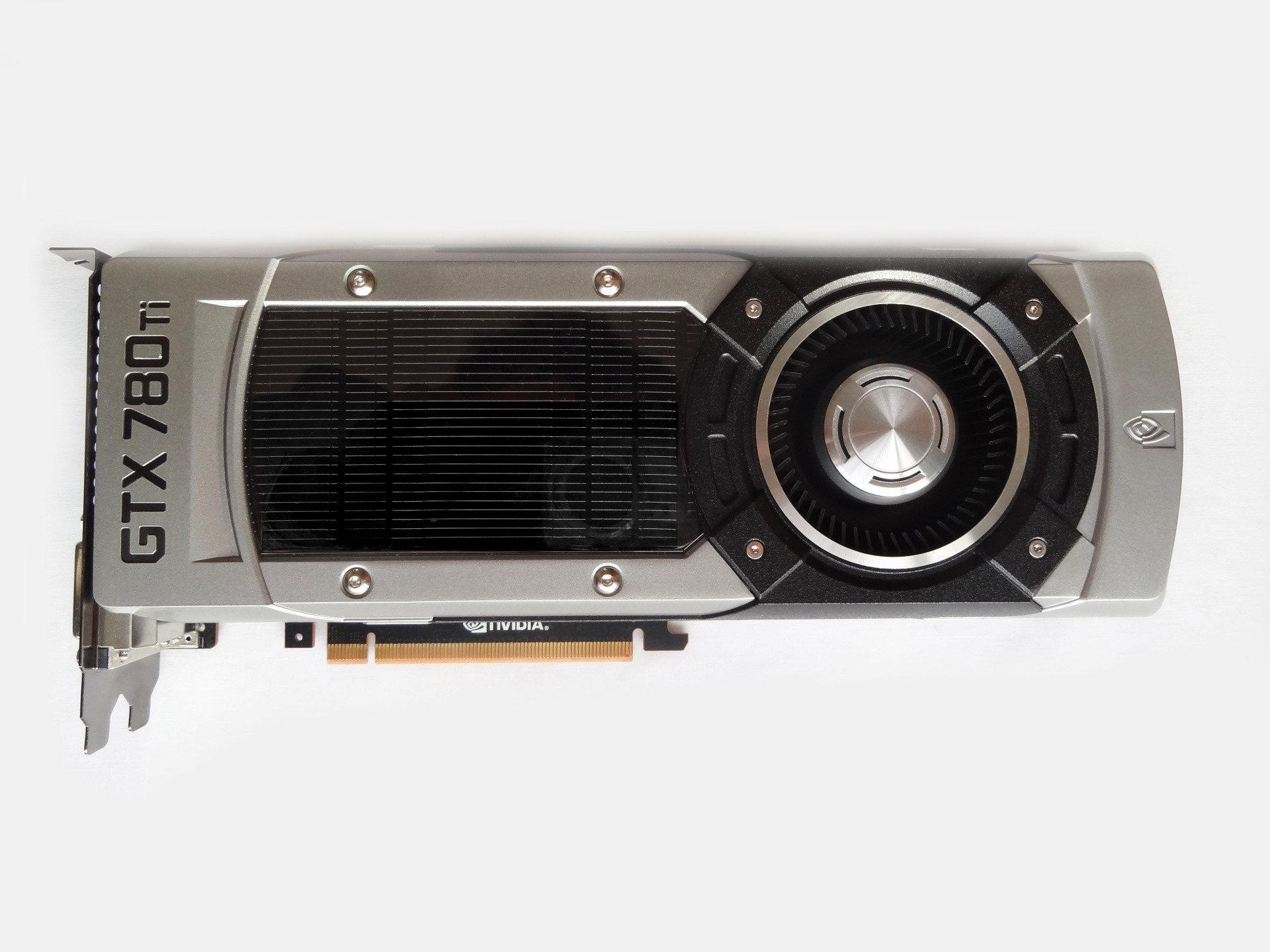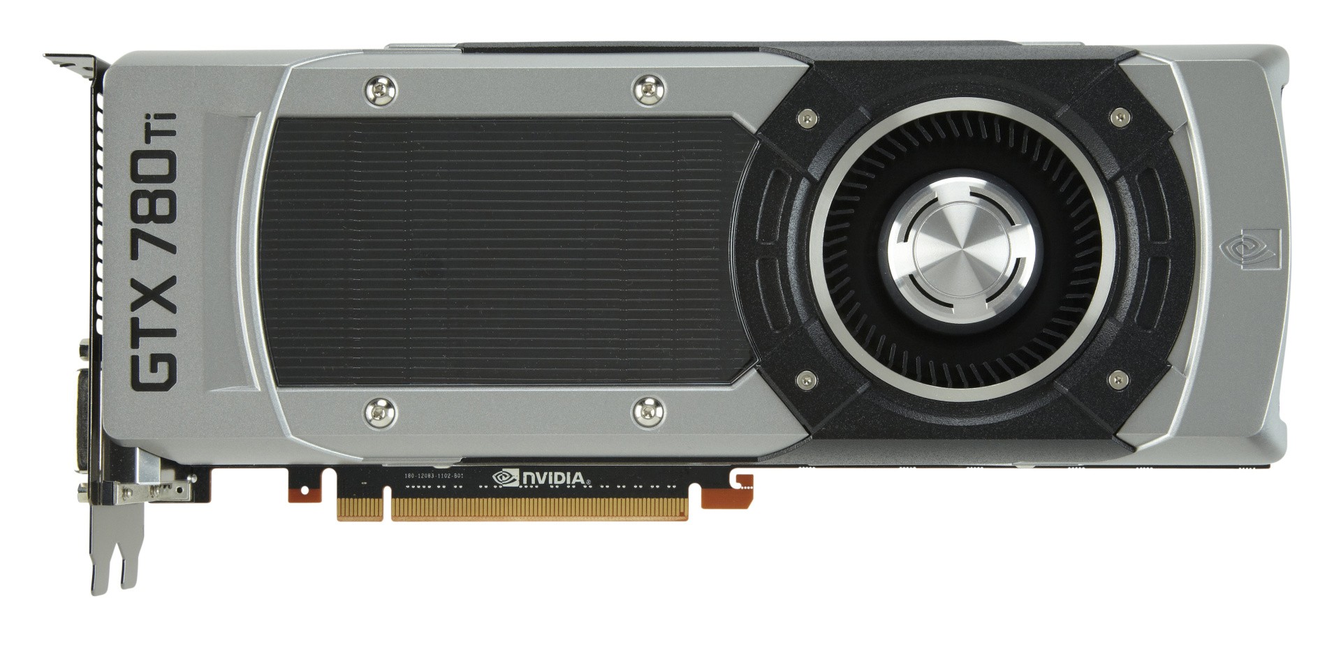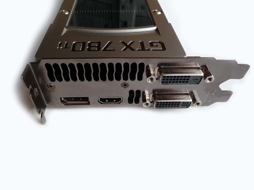 In terms of physical design, there are few surprises: the GTX 780 Ti is a single Kepler GPU housed in a double-slot form factor case, the total sum weighing in at 0.87kg. Much like the GTX 780, it sports a snazzy aluminium exterior with a dark fin array at its centre, plus grills to either end for divided airflow. For the money, it's a design that leaves the impression of a premium quality product overall, especially compared to the cheaper matte plastics used across the R9 290X. Meanwhile, the connections are standard fare: there are two DVI-D slots, DisplayPort (capable of reaching 4K resolutions at 60Hz), plus a single HDMI output.