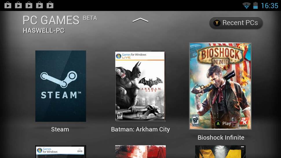 Of course, the gameplay story doesn't end with Shield's Android performance - it can stream PC titles too via a standard Wi-Fi connection, as long as you have a GTX 6xx series graphics card in your system. Gameplay streaming itself is still in beta, but despite that it's fairly robust. Connect Shield and your GTX 6xx-equipped PC to the same network, use Shield to connect and a pairing prompt appears on the PC screen. After that, the handheld can be used to select any compatible game that's installed onto your PC, and there's access to Steam's Big Picture mode too.