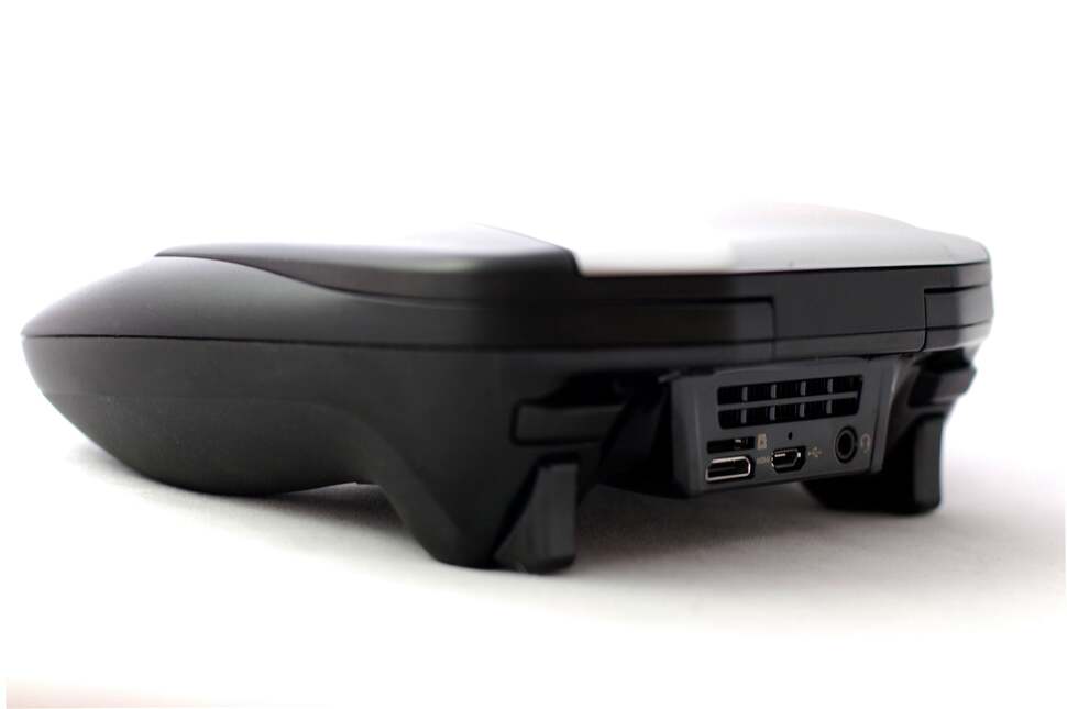 Moving to the back of the Shield we find a MicroSDXC slot for additional expansion, micro-USB, mini-HDMI and a standard 3.5mm stereo jack for headphones. Above the IO interfaces is a genuine surprise - an air-vent. Remarkably, Shield features active cooling in the form of a fan for the Tegra 4 chipset. Were it not for the presence of the exhaust, we'd have no idea that there's any kind of active cooling in effect at all - Shield is virtually silent in operation (even under load) and actually cooler in your hands than the iPad 4 after intense 3D gaming.