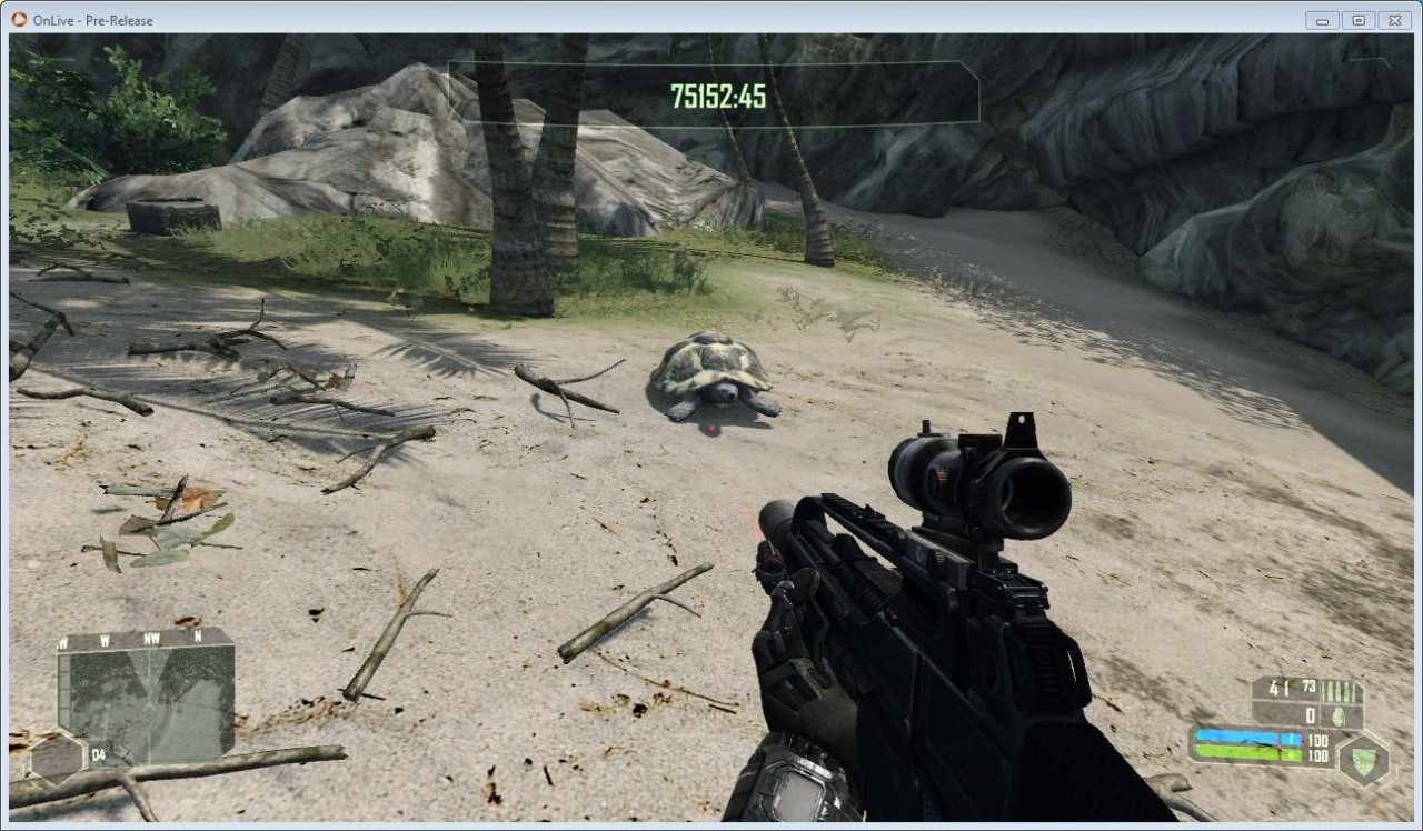So how is the picture quality? An excited beta tester broke his NDA within moments of downloading the 1MB plug-in for his browser and posted these images of Crysis, which do a fairly decent job of showing how OnLive looks at what we can presume to be nigh-on optimum conditions. They might be fake, but it seems unlikely bearing in mind how the Crysis settings seem to be a match for previous OnLive demos.