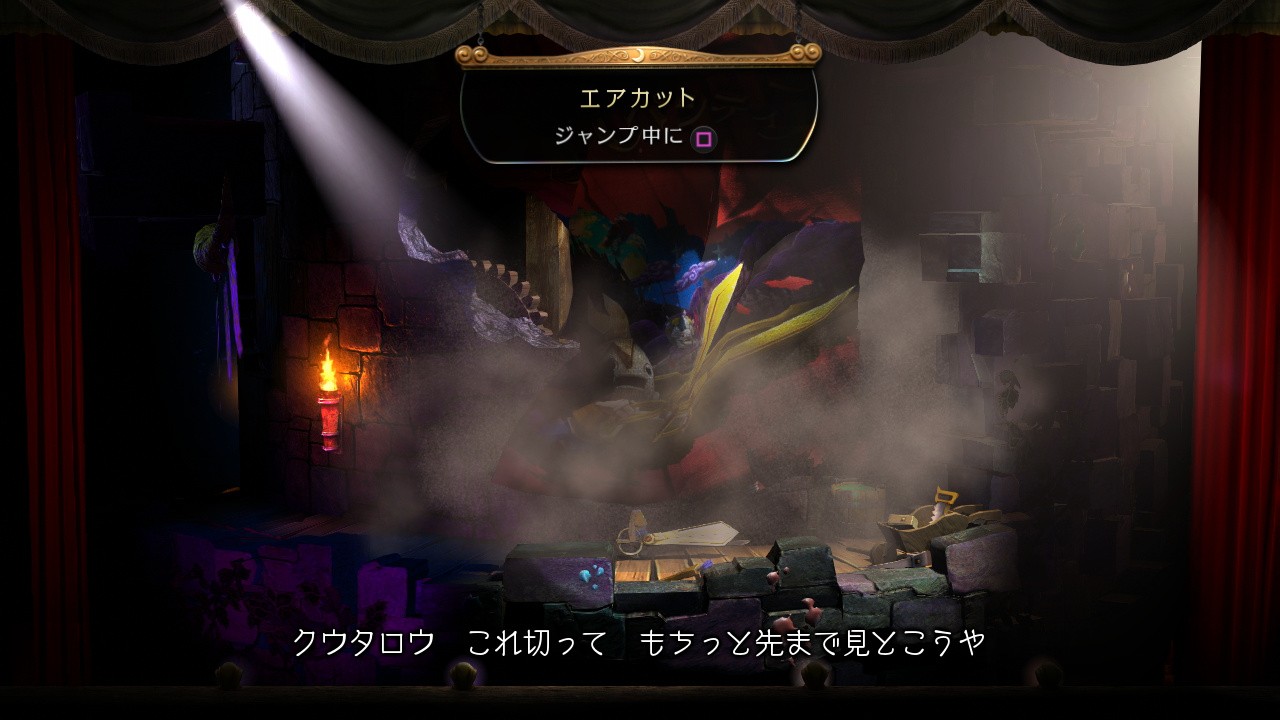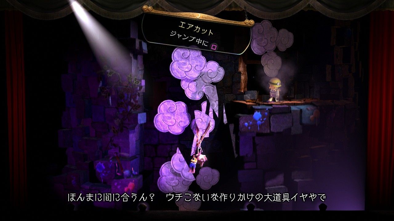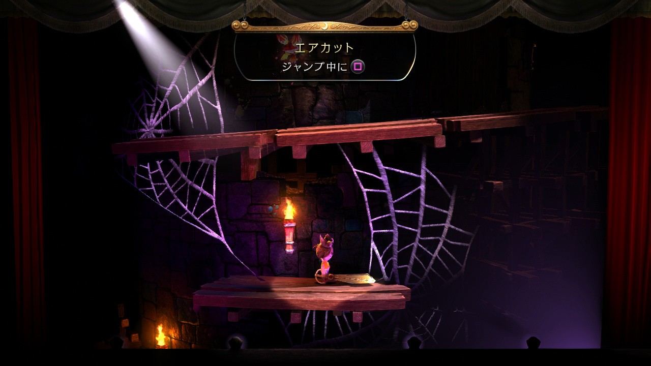 These props exhibit reasonable accuracy in reaction to the slicing mechanic, with cloth tearing to shreds and chunks of wood tumbling to the ground, and objects regenerating following these actions in order to avoid impeding the player. However, unlike the realistic physics-driven gameplay of the similar-looking LittleBigPlanet, Puppeteer separates player control from the more robust environment physics. While the player routinely interacts with complex physics-driven elements, the core mechanics remain predictable and reliable, affording a greater degree of precision than Media Molecule's efforts.