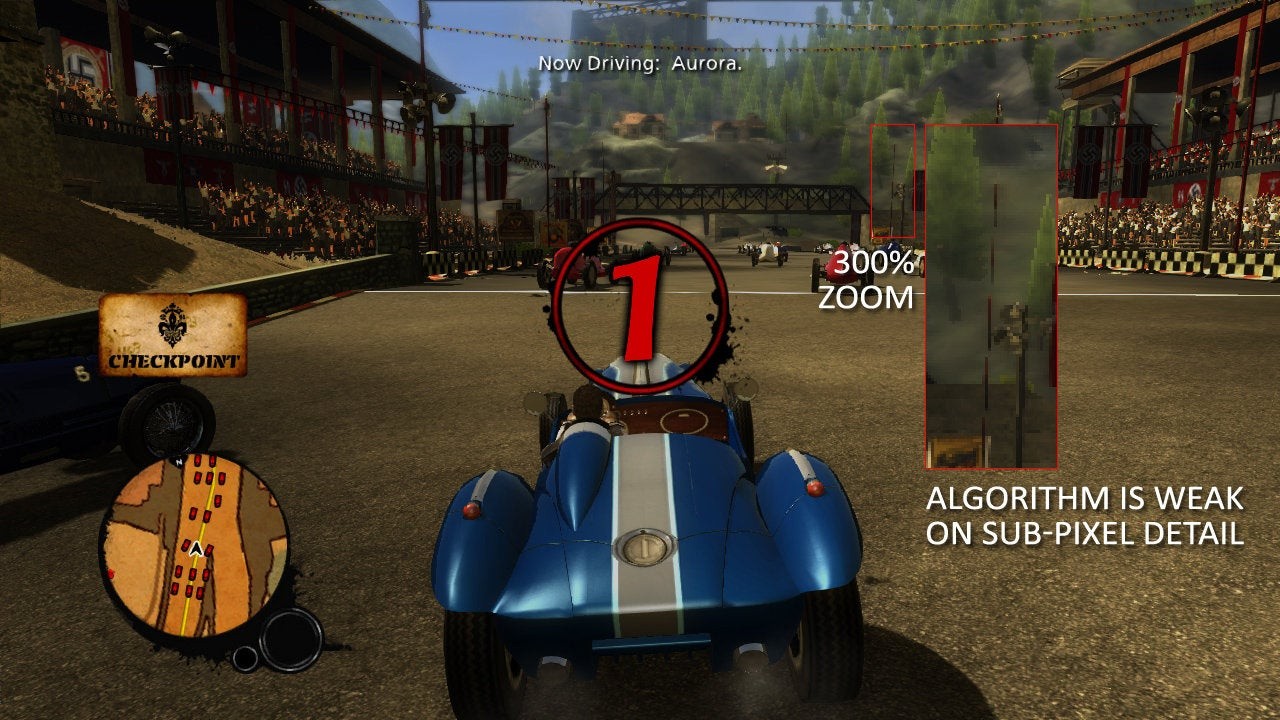 The screenshots may not be showing MLAA, and it's almost certainly not a technique as experimental as we thought it was, but it's certainly the case that this is the most impressive form of this type of anti-aliasing we've seen to date in a console game. Certainly, as we alluded to originally, the concept of using an edge-filter/blur combination isn't new, and continues to be refined. This document by Isshiki and Kunieda published in 1999 suggested a similar technique, and, more recently, AMD's Iourcha, Yang and Pomianowski suggested a more advanced version of the same basic idea.