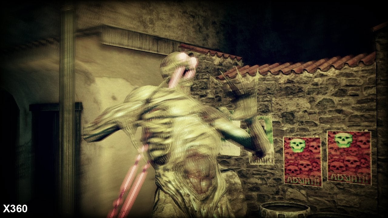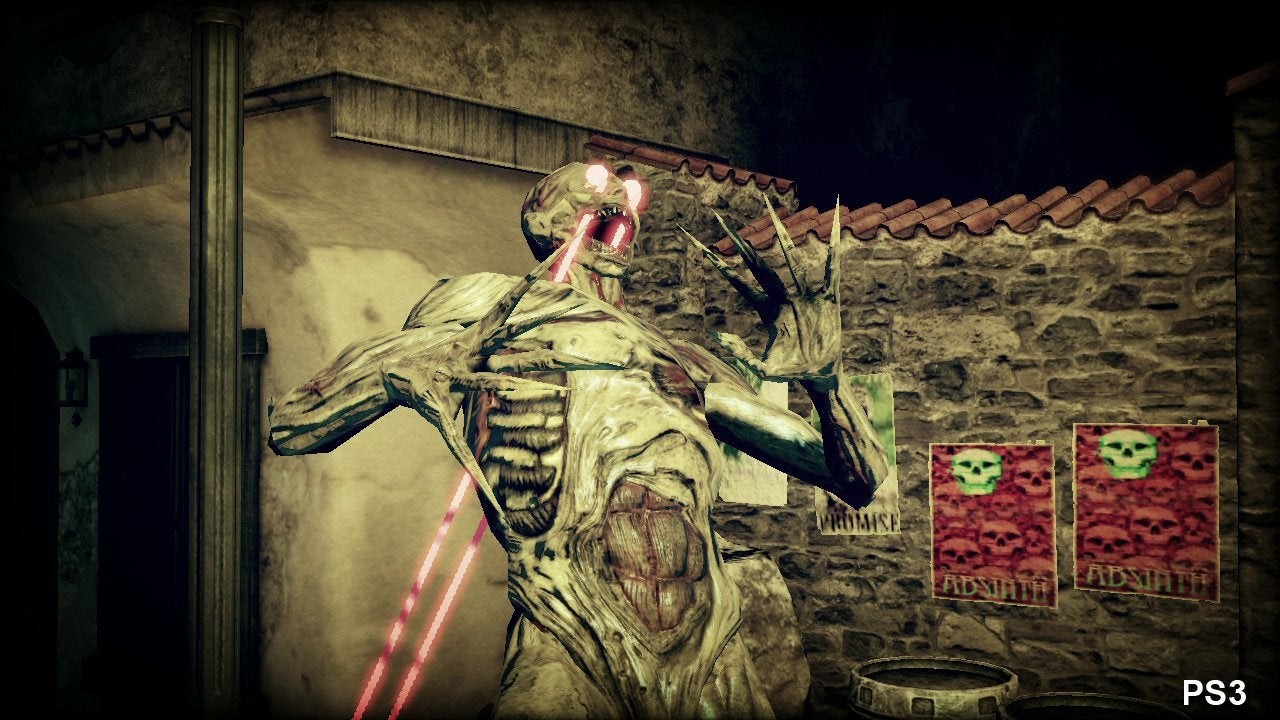 There are no surprises in store for us with regards to the basic visual make-up of the game: Grasshopper offers up a native 720p image with no anti-aliasing on the Xbox 360 and PlayStation 3 - pretty much the standard for Unreal Engine 3 in recent times. Thankfully, the style of the artwork and the dark, low contrast nature of the game combined with the heavy use of post-processing effects diminishes many of the aliasing issues. However, the reliance on these effects does have some impact on overall image quality in that the visuals tend to look slightly softer as a result.