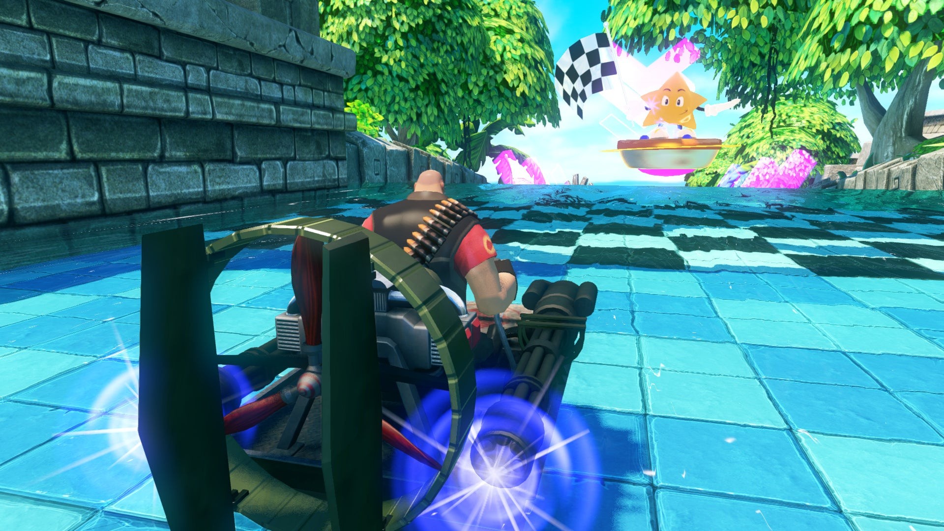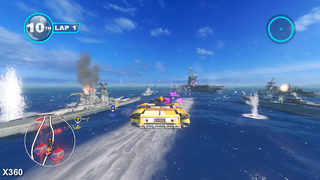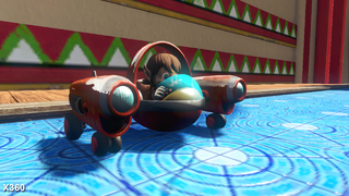 The only grating element in the PC's visual make-up is that the 2D skybox quality hasn't scaled up accordingly, meaning certain backgrounds can look rather blurry. A minor gripe for an otherwise well-rounded port though, which rewards those who waited so long by adding three new exclusive characters, hailing from the universes of Shogun 2, Football Manager and Team Fortress. The PS3 version is sadly missing any such console-specific characters, but the Wii U version allows Miis to join the fray in an OutRun-2 style vehicle. And of course, the 360 gets a similar treatment with an Avatar-based character making the cut.