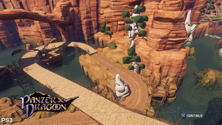As for the refresh rate, we see the 360 commanding the most stable lock on 30FPS of the three consoles, with only the odd dips during water-bound sections. Even with the heavy dropping of v-sync, the PS3 still has to resort to as low as 20FPS while travelling through the Panzer Dragoon circuit's boating segment - not aided by hornet power-up, which obscures the path. The Wii U takes a happy middle ground here, and only really lets itself down with expansive environments occupied by moving geometry, such as the rogue ships on the Skies of Arcadia stage. Down to 25FPS it goes in this case, but for most other levels it mimics the 360's smooth frame-rate.