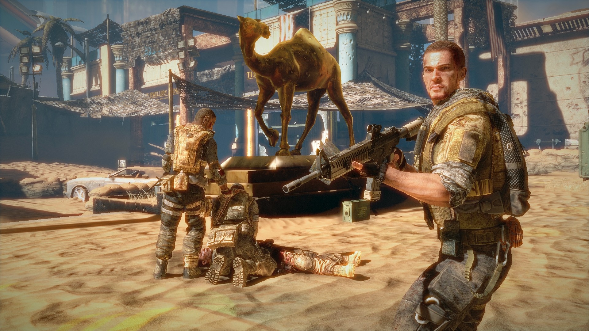 The core gameplay mechanics also work very well, with the fallen city of Dubai offering up a number of interesting encounters to keeps things fresh, while also bringing a sense of scale and spectacle to the proceedings - from using shifting sand dunes to your advantage, to engulfing the player in a battle for survival in dust-clouded firefights where the environment begins to tear itself apart. It's an experience that is effectively conveyed across all three platforms, although not all in equal measure.
