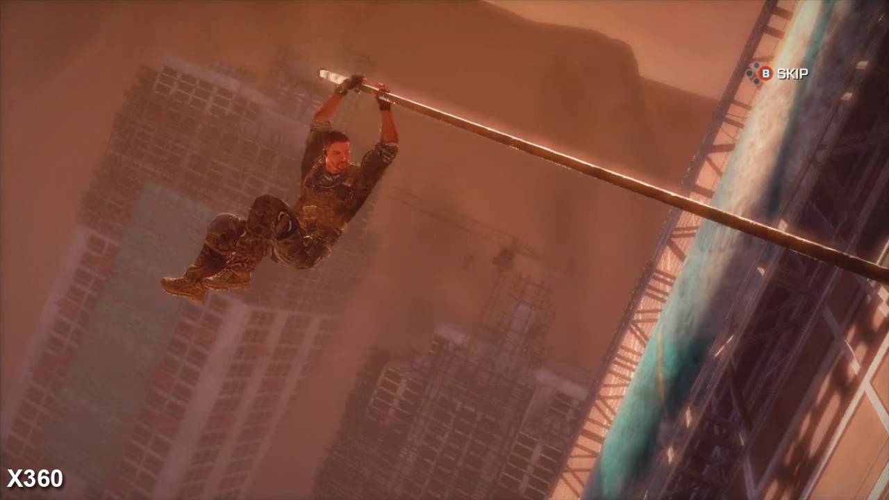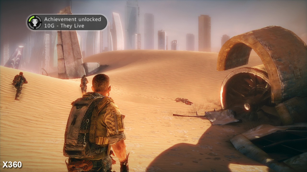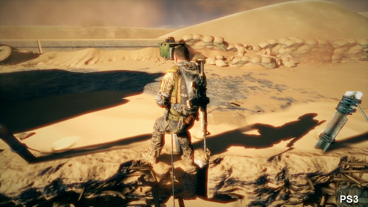 On the face of it, the 360 copes very well with the rendering load, with the game only mildly deviating from its target frame-rate on a few occasions across the general run of play. Remarkably, in demanding scenes which see the screen littered with heavy alpha effects (dust and sand particles) and detailed scenery being ripped apart by intense sandstorms, the game remains largely locked at 30FPS with little screen-tear. Instead, more than anything else the engine's streaming appears to be the root cause of the frame-rate drops, which cause similar dips in performance at similar points on both platforms - and, interestingly enough, can cause havoc on the PC version too.