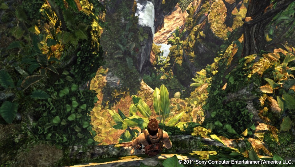 One of the biggest visual highlights of Golden Abyss is seeing light patches pass through onto Drake's back as he runs through these enclosed jungle pathways, and likewise during cave levels, where occasional spots of light shine through crevices. Leaves also reveal a transparent property, which enables you to see on which parts of each individual blade on a tree the lighting and shadows falls on - a very nice touch.