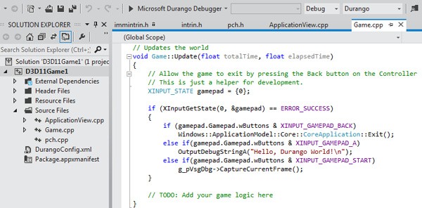 The presence on this screen of the "immintrin" element strongly suggests that the Durango coding environment is built around x86 CPU architecture, supporting the AVX (advanced vector extensions) instruction set that was added in last year's Sandy Bridge revision. However, AVX is now supported on some of the most recent AMD processors too.