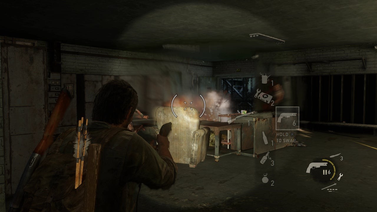Despite the sometimes variable frame-rate during stand-offs, however, The Last of Us never becomes remotely unplayable, and the fact the player is given so many choices in each situation means a noticeable drop in smoothness in the most intense scenes isn't as damaging as it would be in other games. Switching to melee combat is more forgiving, and in many ways does a better job emphasising the feeling of survival when the odds are stacked against you.