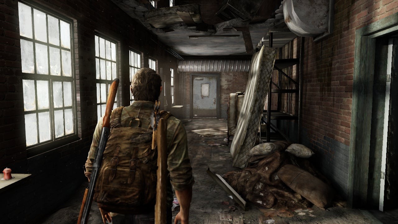 In this post-apocalyptic world, electricity is almost entirely absent: the sun is the main source of illumination for environments in the game, which are mostly lit and shaded indirectly when venturing inside buildings and going underground. Naughty Dog employs a distinct global illumination system that replicates the effect of sunlight bouncing around the environment, providing subtle variations in the way locations are lit and shaded. Direct light sources - the sun, torches and gunfire - are rendered dynamically in real-time, casting their own shadows, while secondary and ambient lights are achieved via baking (pre-calculating) these elements into the environments using dynamic light maps. The end result is that locations appear natural and contain plenty of depth.