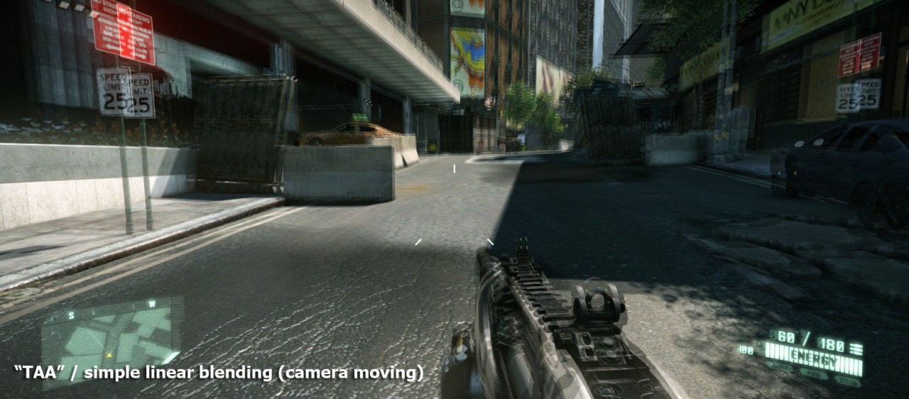 "If we want to be technically accurate, TAA is actually what is commonly known as motion blur. But TAA in gamer language is the naive denomination for the simplest form of amortisation of super-sampling cost: a simple linear blending between current and previous frames subsamples and which looks very similar to the old-school cheap 'motion blur' trick seen in many older games," Tiago Sousa explains.