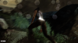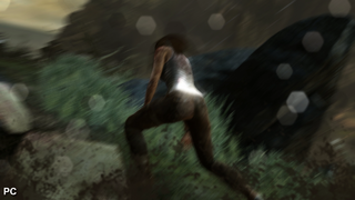 Lara moves confidently through her surroundings on all platforms. Animations appear both smooth and natural, even if the overall effect isn't as convincing as those found in Naughty Dog's Uncharted games, which use advanced animation blending systems to create realistic movements that appear more nuanced and realistic. Object and camera blur is used to enhance the cinematic look the developers are clearly aiming for, with the 360 and PC versions featuring a higher precision version of the effect. Lara is also well-modelled, with the character taking on a more natural look compared to previous games. The change in appearance goes some way to help create a stronger connection between the player and the character than we've seen in prior games; subtle facial expressions are used to convey a range of emotions - initially fear and self doubt, but as the game progresses we see anger, relief and confidence develop.