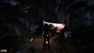With regards to image quality Tomb Raider renders natively in 720 on both consoles, but it's clear that the presentation on the 360 isn't always quite as sharp and striking as its PS3 and PC counterparts. Images appear softer on the platform with the intricate artwork smoothed over to a higher degree, while shadow detail appears to be crushed in amongst the darkness. The use of different post-process anti-aliasing implementations between platforms appears to be the cause, along with a very low gamma set-up on the 360 that often creates dim images without some serious adjustment.