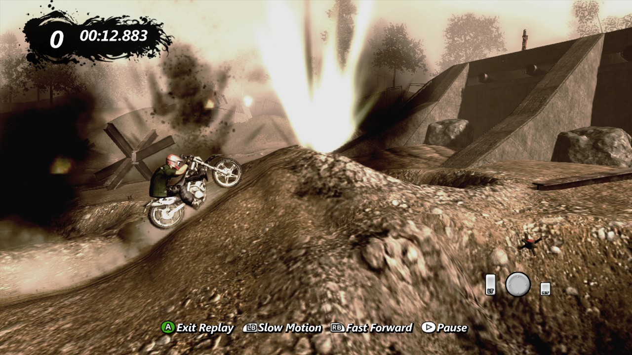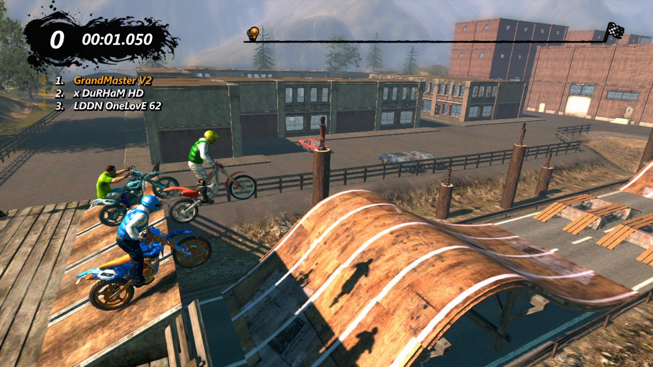 Sebastian Aaltonen: Trials Evolution was our first Xbox Live multiplayer game, so it was naturally a learning process. Fortunately our game modes are really latency-tolerant because bikes cannot collide with each other. In Supercross each bike has its own lane, and in Trials you will see opponents as real-time ghosts. This allowed us to have perfect control precision in multiplayer as well. If the network is slow, only opponents' bikes show any signs of lag. Your own bike always plays perfectly.