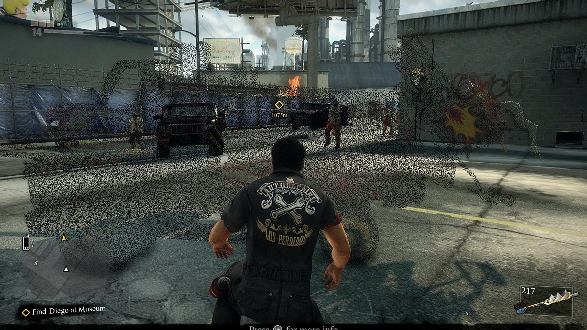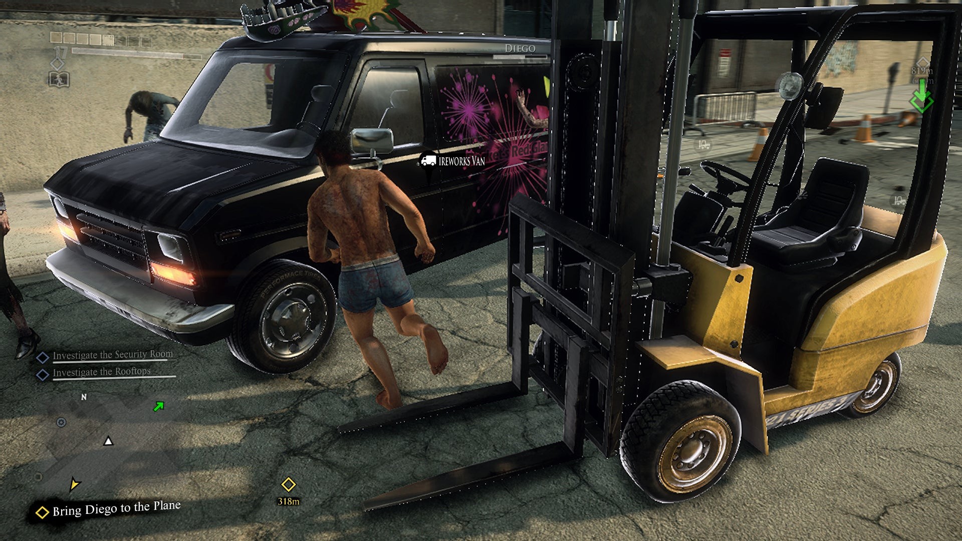 Accepting that some compromises go with the territory of developing a launch title, the question remains: has this technical trade-off been well-judged? Certainly, the zombie horde looks impressive in its increased numbers, and the boost here means the game's core appeal - the flourishes of fantastical violence - are ratcheted up another notch. The pop-in has also thankfully been reduced since the game's E3 appearance, though textures still visibly stream in after covering ground too quickly in vehicles. Object pop-in is mitigated through the use of a somewhat curious non-alpha fade-in technique, a visual quirk that has the polygonal structure of items like cones and fences fill out as our protagonist Nick Ramos walks forward. This gives a fizzling effect to weapons and vehicles too as they're summoned into the game world via the crafting system.