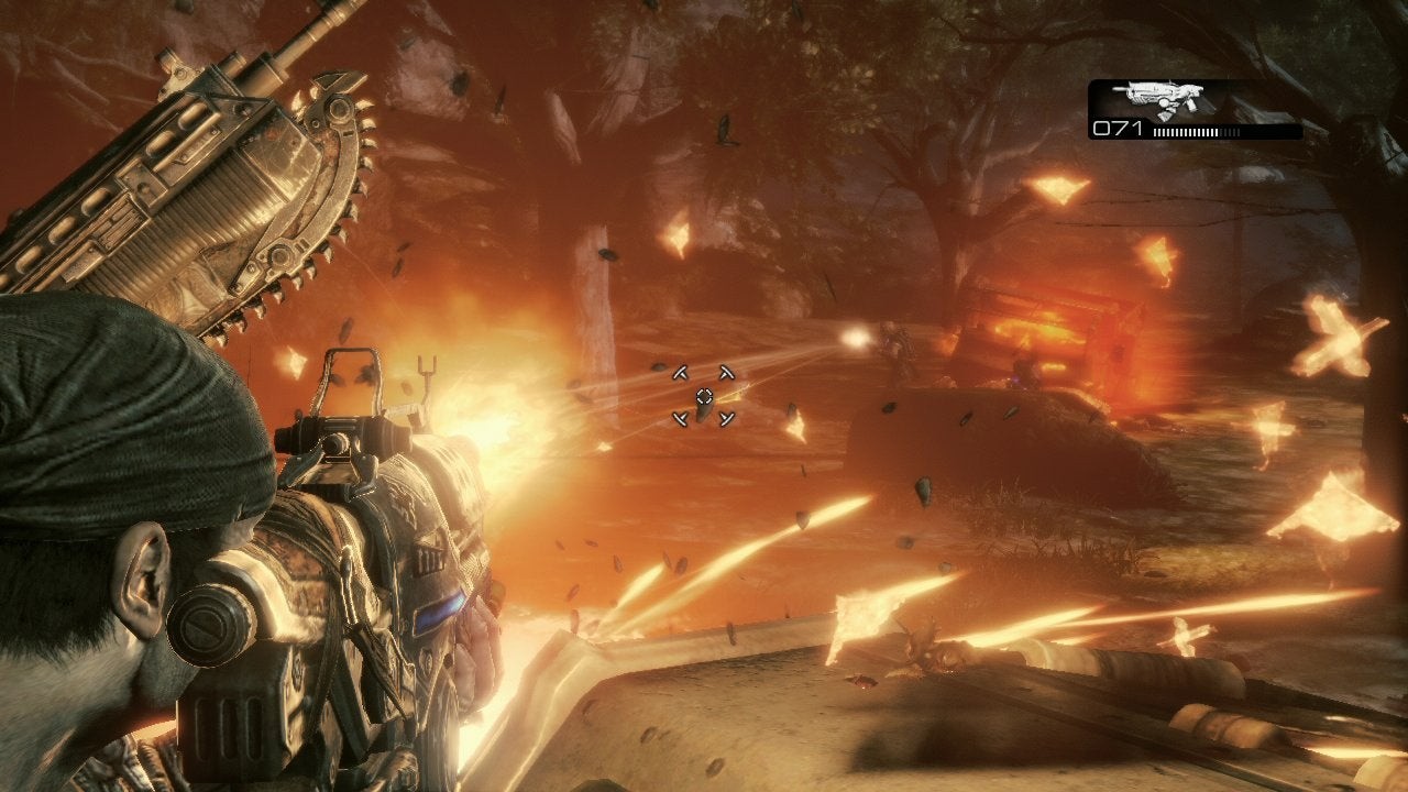By and large though, the performance hit isn't especially onerous bearing in mind how little the core Gears 3 experience is being compromised. So how is this possible? It's not until you finish the game and run through the credits that you see the full range of partner technologies that Epic employed for the game - one of them is TriOviz.
