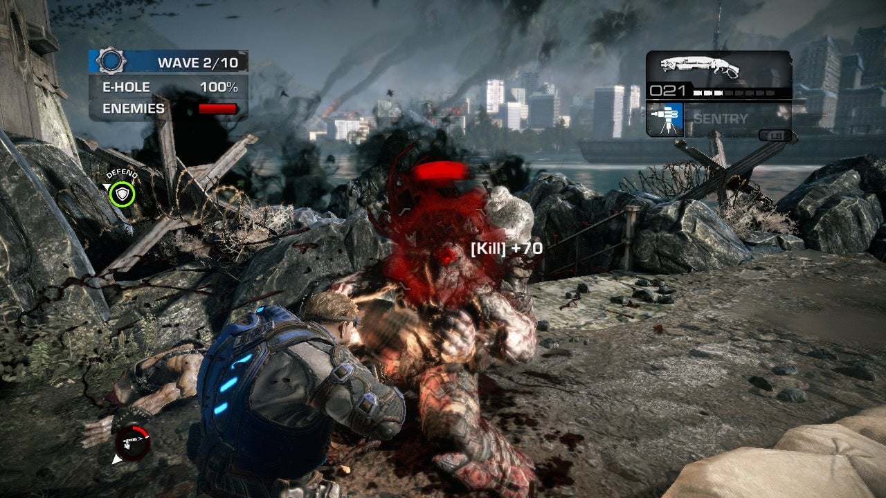 So let's lay all cards on the table: Judgment is very much your game if you love the core, meaty mechanics of Gears of War. If you love Horde mode. If you love the arcade-style scoring systems of the People Can Fly's wacky billiards-with-guns FPS, Bulletstorm. It offers up a campaign built around surviving in one walled-off arena in a turret defense fashion, racking up points, and then moving on to the next without so much as a boss battle or ride on the back of a giant Brumak. In other words, the grand set-piece moments that peppered Gears of War 3's adventure are shorn in favour of a tighter formula. But despite conceptually rooting its feet firmly to the ground, Judgment still manages to rank among the most visually breathtaking shooters we've played this generation.