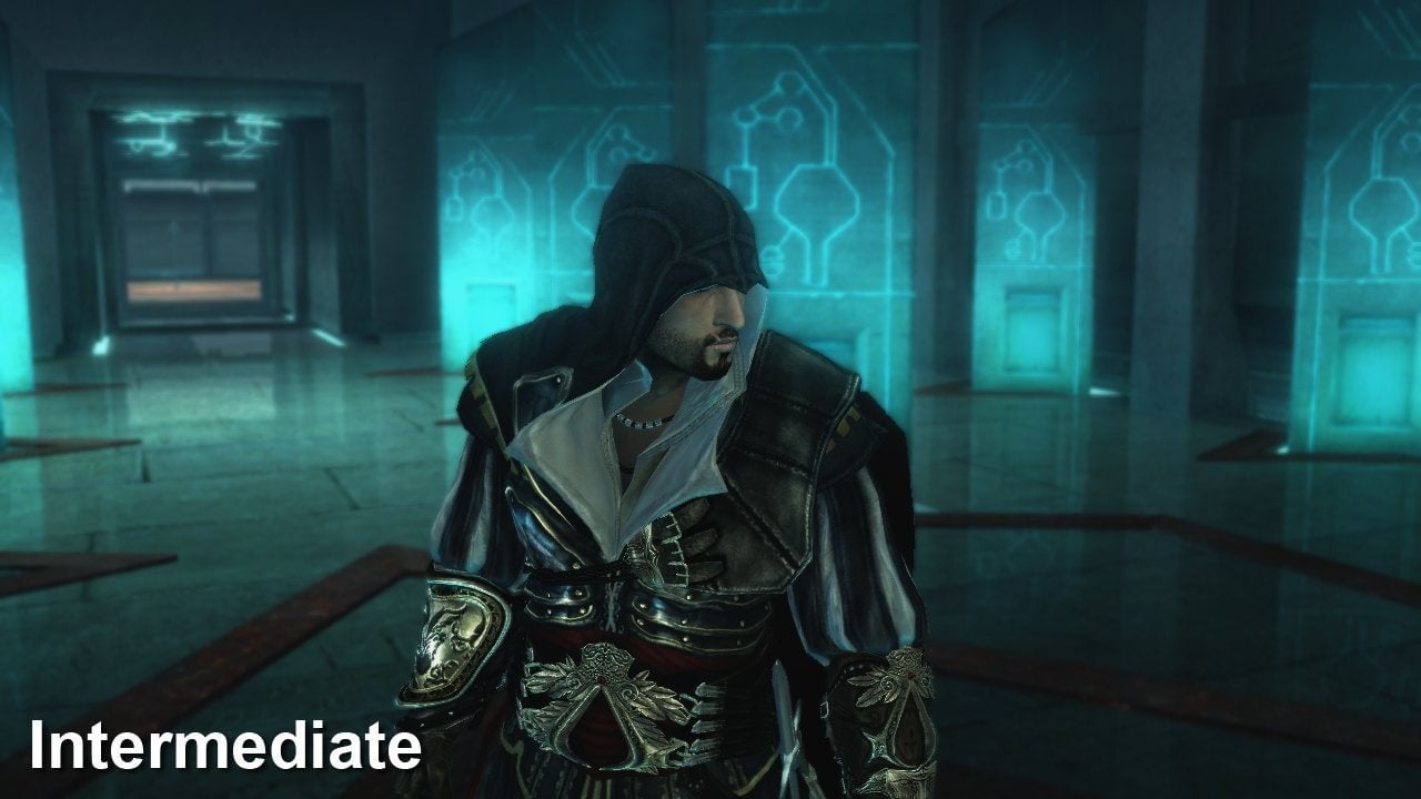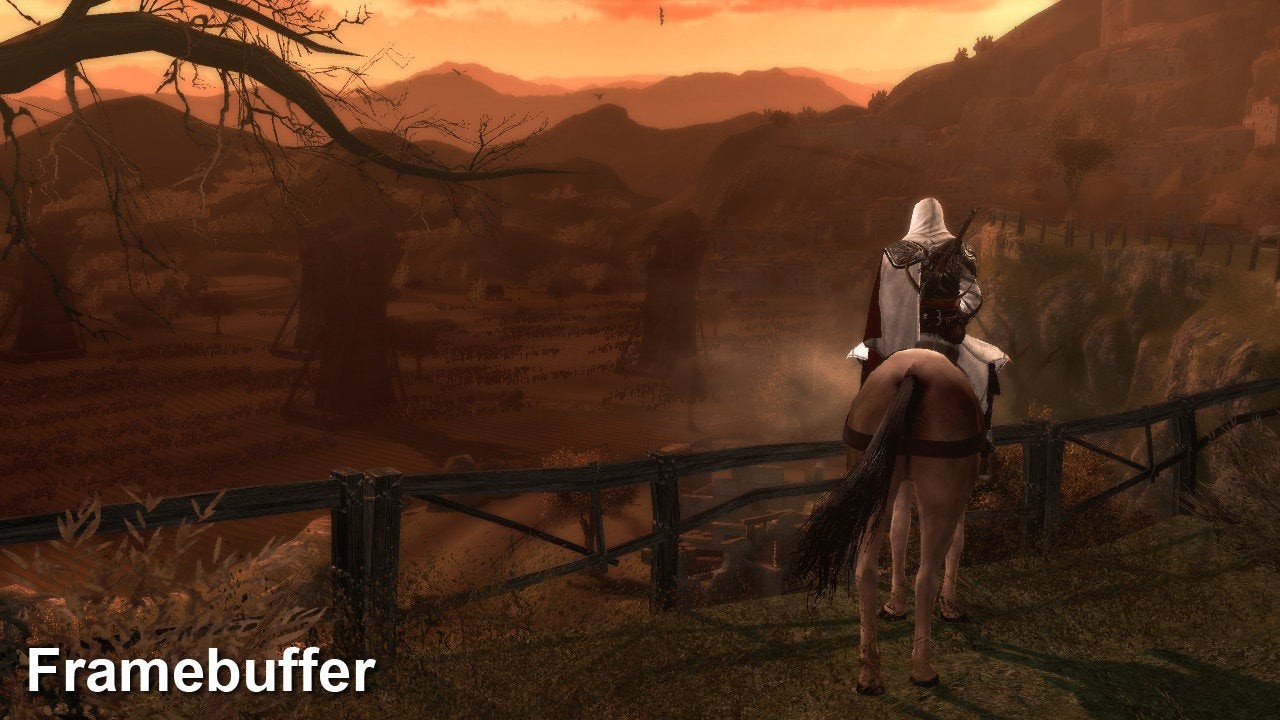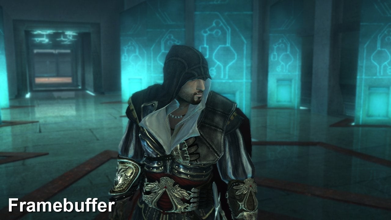 On Assassin's Creed: Brotherhood, the framebuffer dump comes from the intermediate capture. We had to re-run the capture to do the other two settings, which explains minor differences in the image.