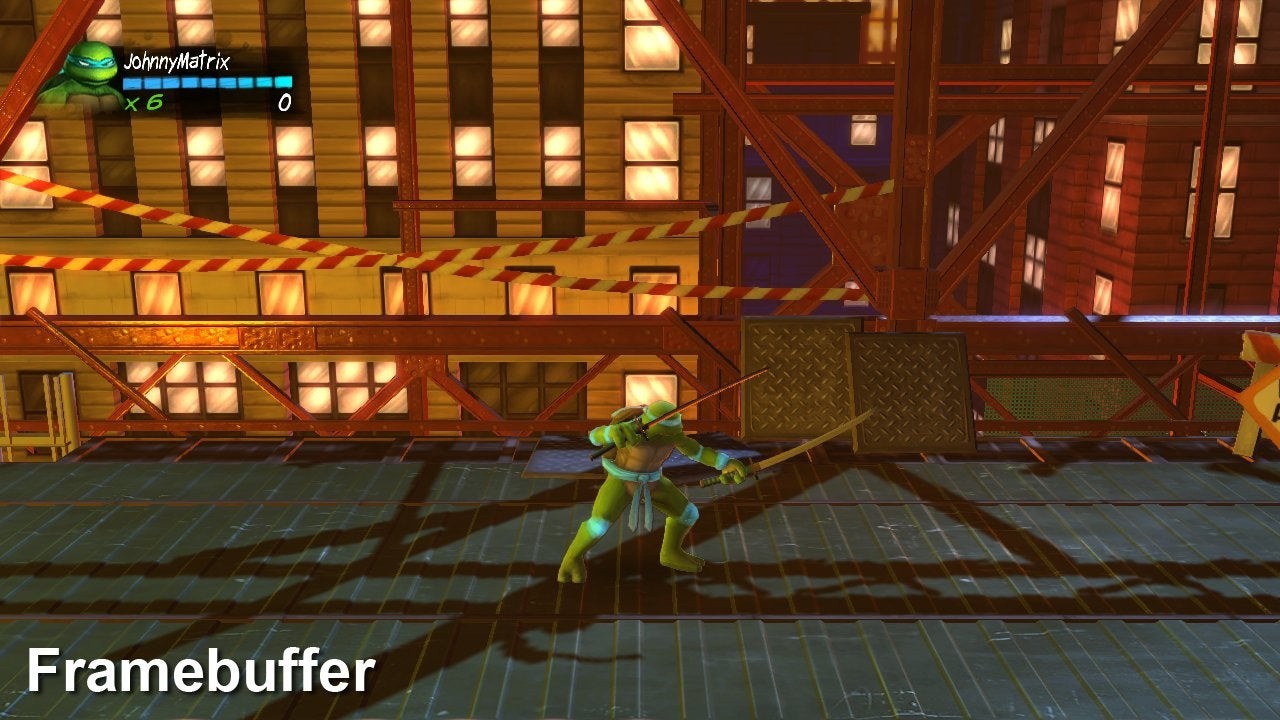 While the change is self-evident, many games - Assassin's Creed: Brotherhood included - do operate with a dynamic lighting subtly altered by world objects that appear to be randomly placed, so there are some tiny changes in the make-up of the image between capturing sessions. Just to be perfectly clear about the differences between the various modes, we shifted to Teenage Mutant Ninja Turtles: Reshelled, which has a very static form of lighting we can take advantage of.