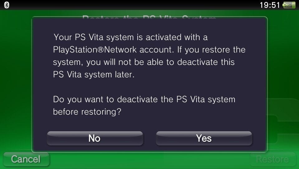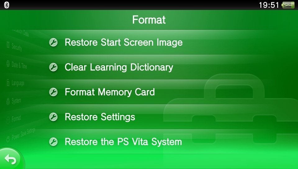 For multi-account owners out there, the switch takes roughly 10 minutes to complete. It involves going into the Settings menu, selecting Format, and tapping 'Restore the Vita System'. At that point you're prompted to deactivate your currently attached account from the Vita, and then to reset system data, both of which you should accept. You will are then asked if you'd like to reformat your memory card, which can be refused with no repercussions. The Vita then resets itself, and on boot asks you to connect to the internet and enter your new desired PSN account settings. You'll then be forced to view an unskippable two minute intro movie, after which you're taken back to the Home screen with all your previous games and apps intact.