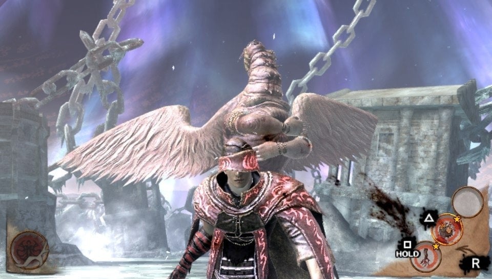 Away from the gameplay there appears to be a different balancing act going on within Soul Sacrifice, one that is directed towards delivering large scale enemies and environments to the screen in combination with a slew of dynamic effects, while attempting to maintain a smooth frame-rate when the engine is under considerable load. The use of restrictive environments is one distinct compromise in catering to the limitations of the Vita's weaker hardware set-up in comparison to the PS3 and 360 in order to accommodate large adversaries on-screen, while the other is with regards to overall image quality.